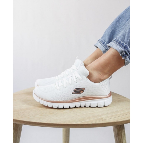 Ir al gimnasio sin tener que cargar con otro par de zapatos nunca fue tan fácil gracias al modelo SKECHERS Graceful - Get Connected. Parte superior de malla Skech Knit de una sola pieza en un calzado deportivo con cordones, capas superpuestas y costuras. Plantilla SKECHERS Memory Foam.