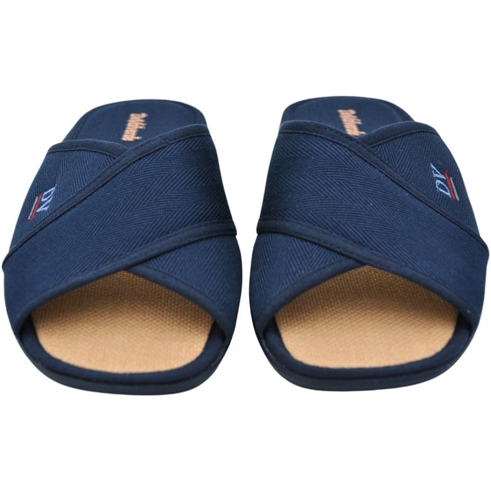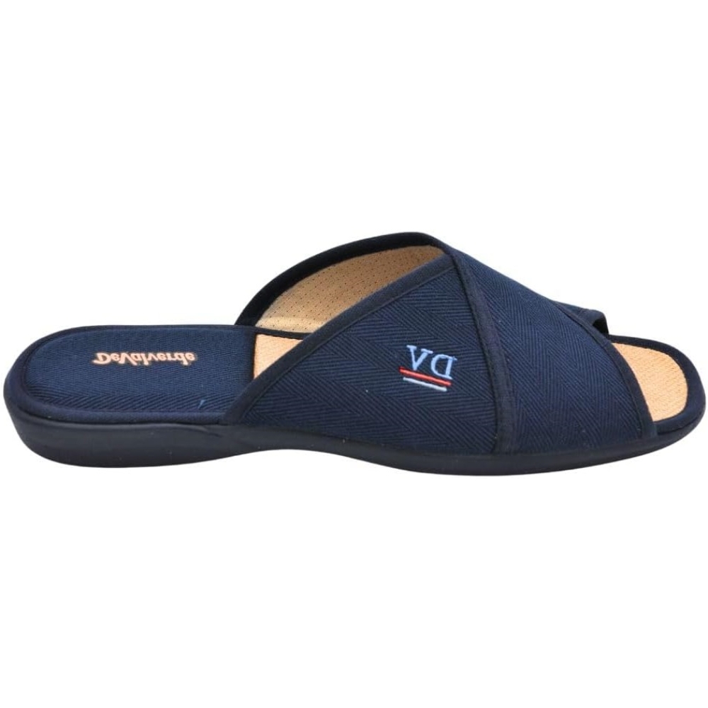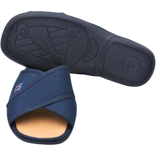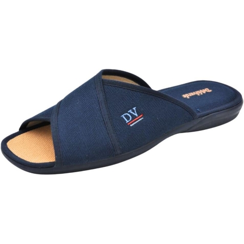 Zapatilla de casa para hombre en color marino, pala en tiras para una mayor sujeción, con suela antideslizante