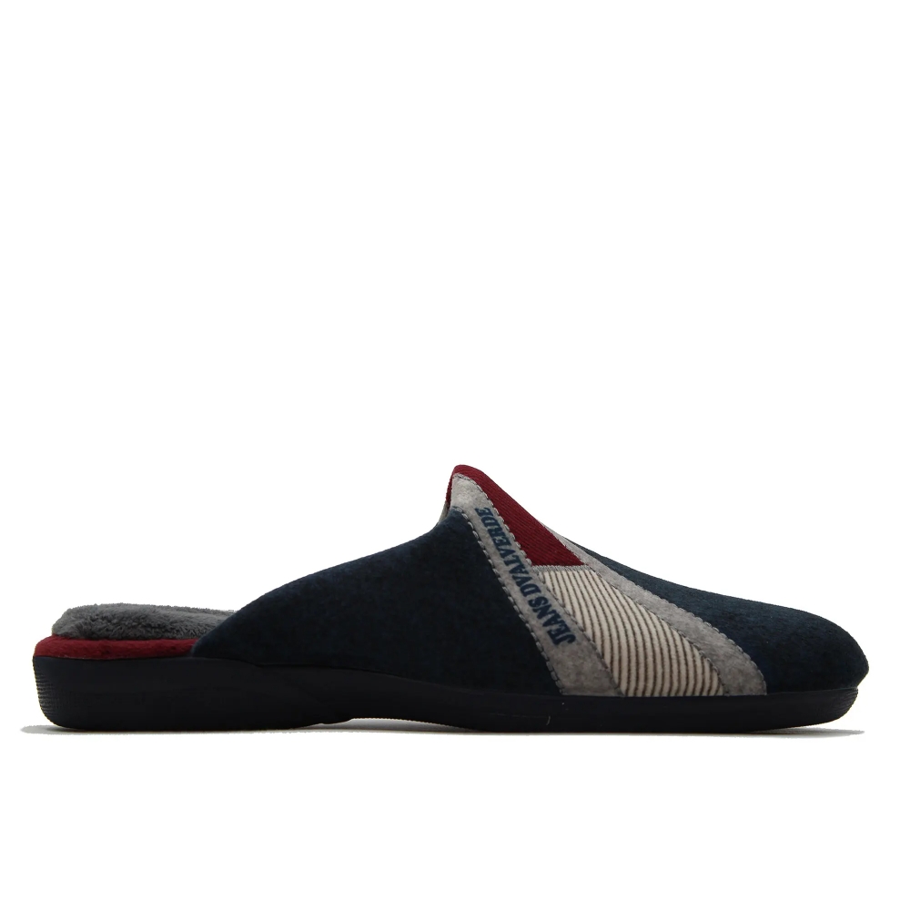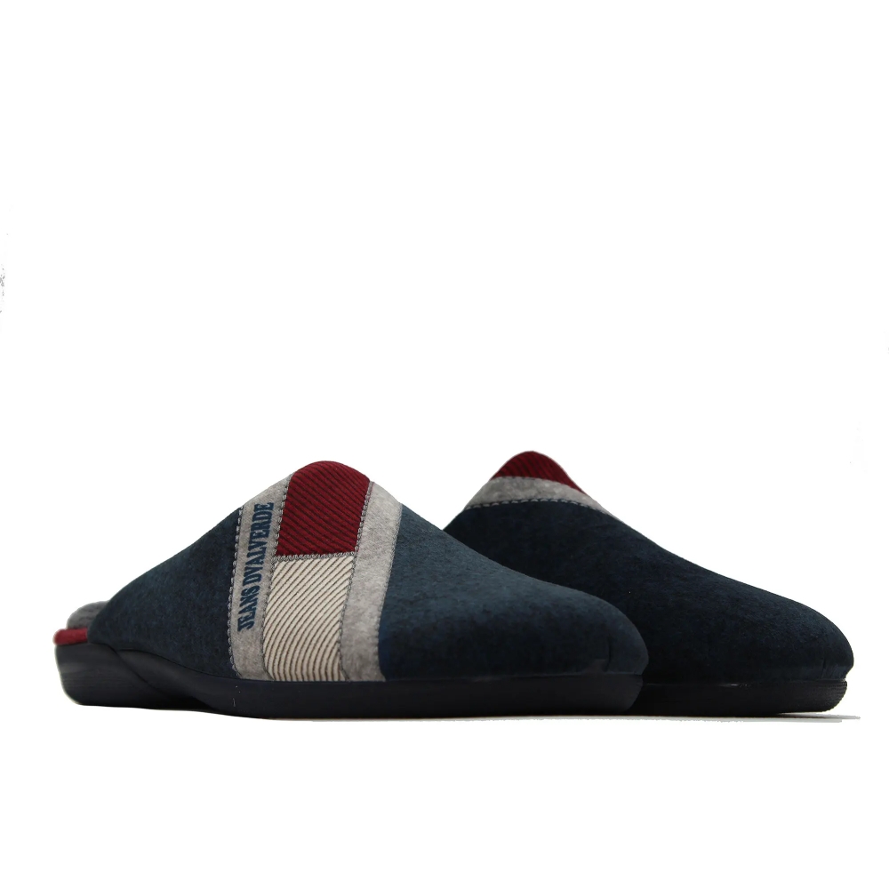 Zapatillas de casa para hombre con talón abierto y dedos cuebiertos, de la marca Devalverde, decorada con sencillez, clásica, pantufla hecha en España en textil, Chinela con forro interior en textil y suela de goma muy cómoda.Piso con grabado especial rugoso para evitar posibles deslizamientos. Fabricada con tejidos en microfibras y algodón que permiten una constante ventilación. Suela con relleno de corcho natural para una total absorción de los posibles impactos. Utilizando materiales que cuidan al máximo posible el medio ambiente. Hecho en España. Lavables a mano. Otoño invierno.