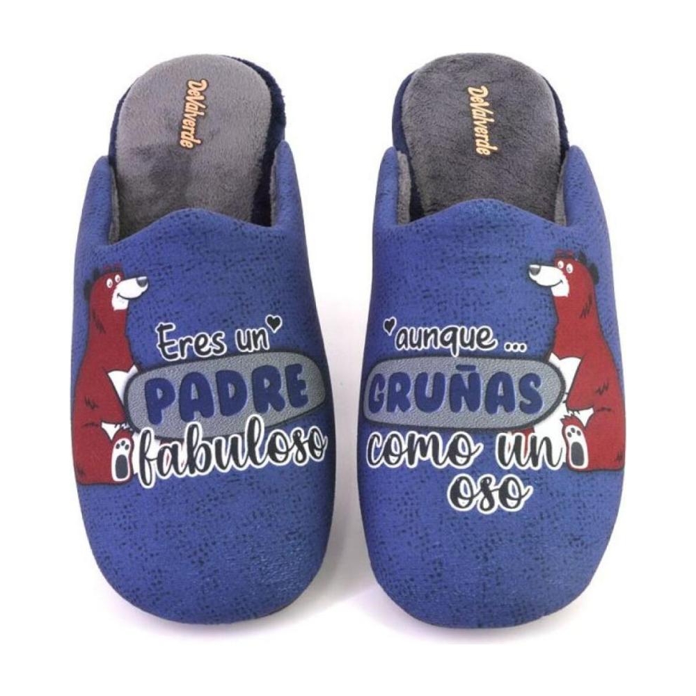 Descubre el confort y la diversión con las zapatillas de casa DEVALVERDE 3540. Fabricadas en un suave tejido azul marino, estas zapatillas destacan por su original diseño con el mensaje "Soy un Padre Fabuloso, tengo Gruñas pero soy un crack", ideal para padres con sentido del humor. Su suela ligera y flexible garantiza el máximo descanso en cada paso. Perfectas para relajarse en casa con estilo y un toque personal.