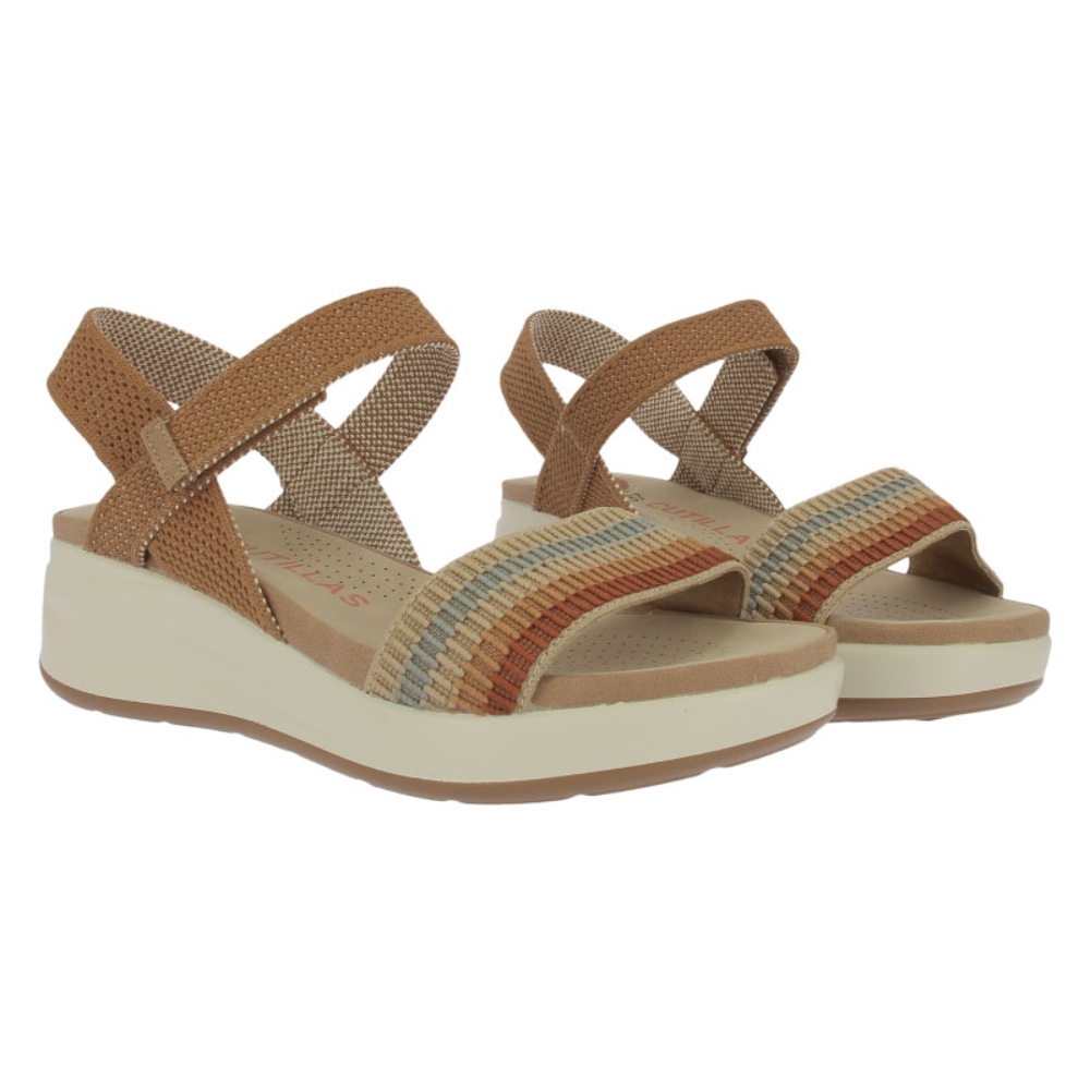 Sandalia de piel estilo confort para mujer. Fabricada en material de gran calidad con velcro para un mayor ajuste y comodidad. Color camel