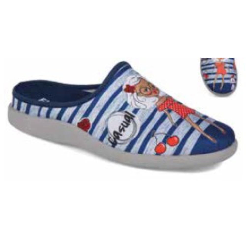 Zapatilla destalonada de la marca Flossy para mujer. Fabricada con suela de goma flexible y antideslizante. Color azul