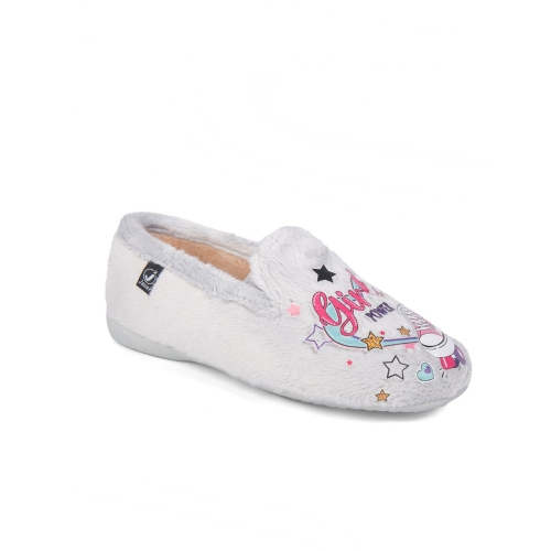 Zapatillas de casa para niñas cerradas en color gris. Fabricado en España, flexible, con un pelito extra suave y proporciona una comodidad y libertad en cada movimiento.
