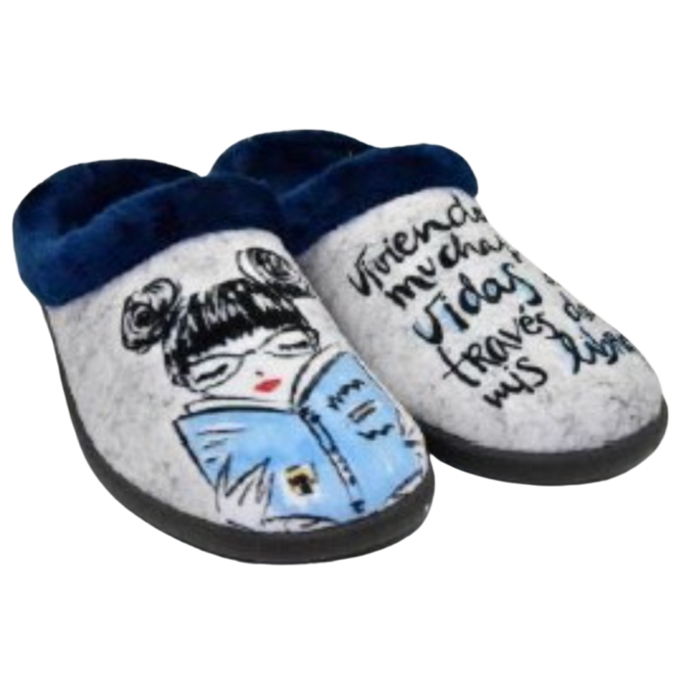 Zapatilla de hogar destalonada de la marca Flossy para mujer. Fabricada con suela de goma flexible y antideslizante, ideal para todo tipo de suelos. Se pueden lavar a máquina. Color marino