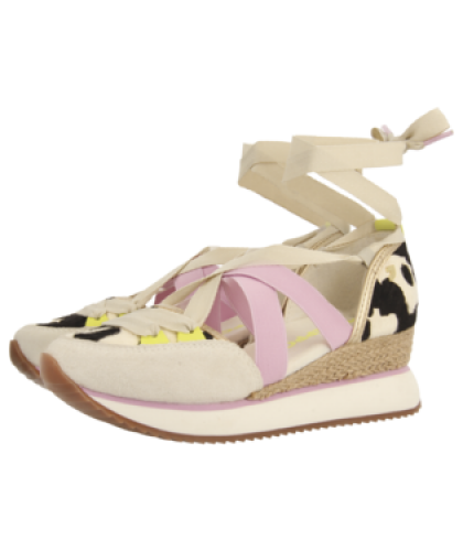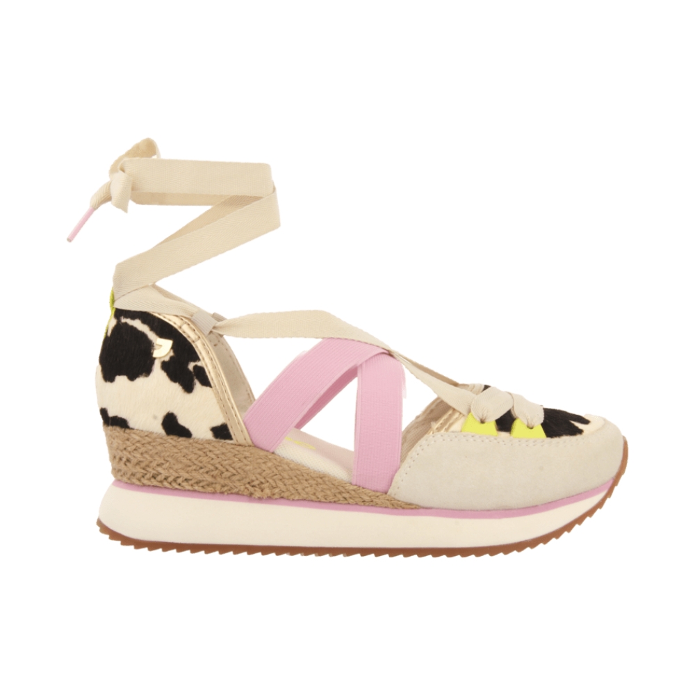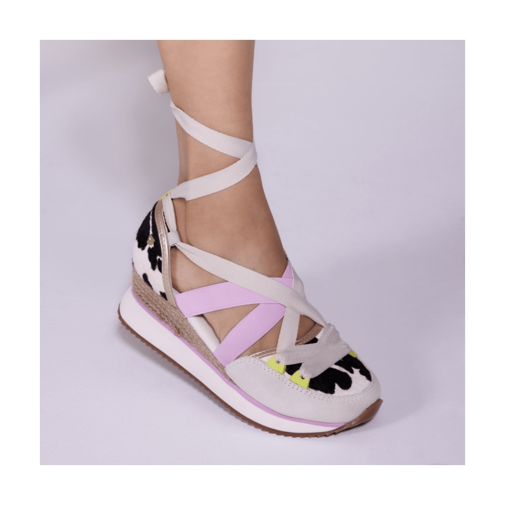 Sandalias deportivas de piel con estampado animal y cuña de rafia. Cuentan con planta acolchada. Atadas con tiras. Altura cuña: 5,5 cm.