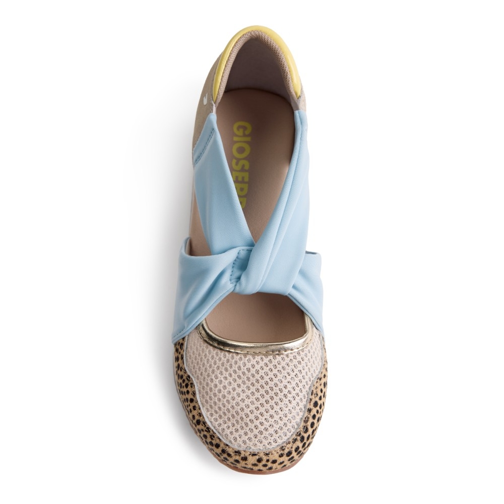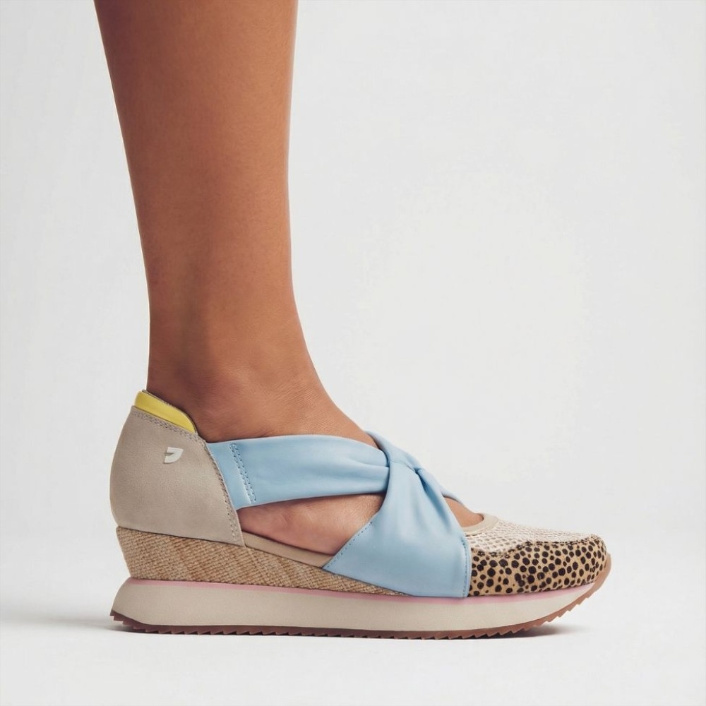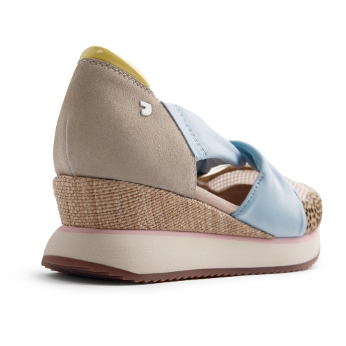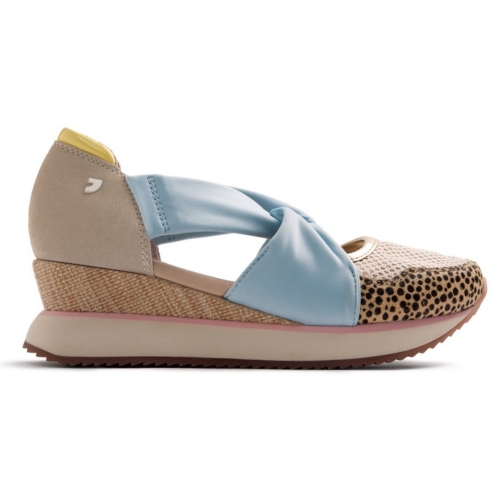 Zapato de estilo deportivo con el empeine descubierto para mujer. Fabricado en materiales de gran calidad con cuña y suela de goma estilo deportiva, ideal para tus looks del día a día. Color azul