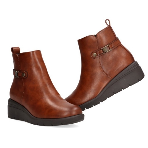Botin con cuña baja y cremallera lateral de la marca Hispaflex para mujer- Color cuero