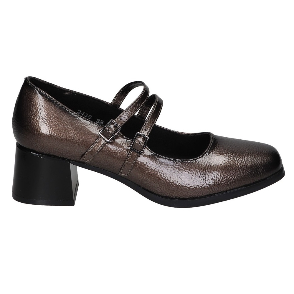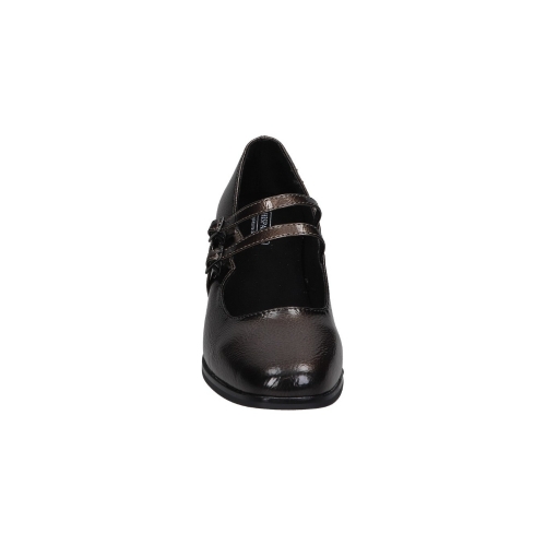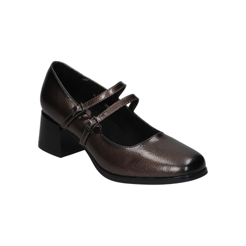 Zapato con tacón y hebillas de la marca Hispaflex para mujer. Fabricado en material sintético. Color plomo