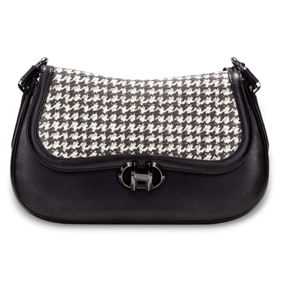 Bolso de hombro con silueta de media luna, elegante y versátil para elevar cualquier look diario o de noche.
