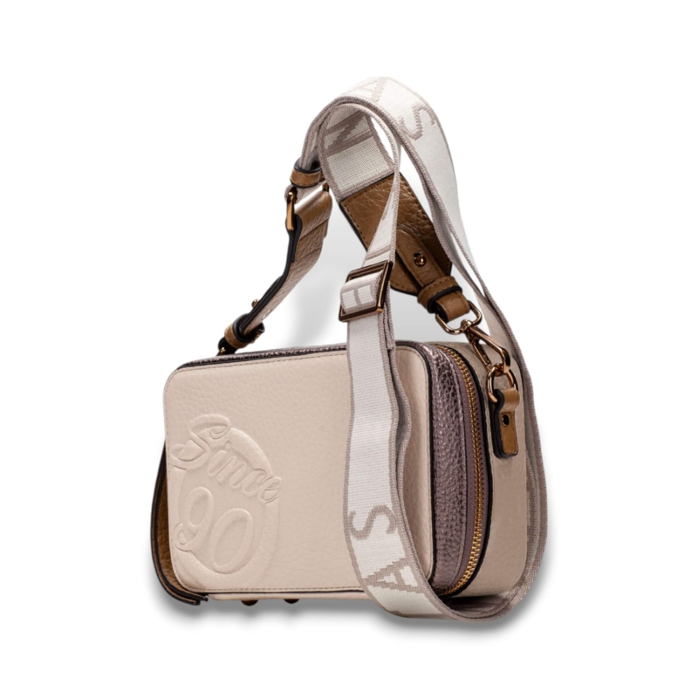Bolso estructurado de estilo contemporáneo, perfecto para elevar cualquier look con un guiño especial a la historia de la marca.