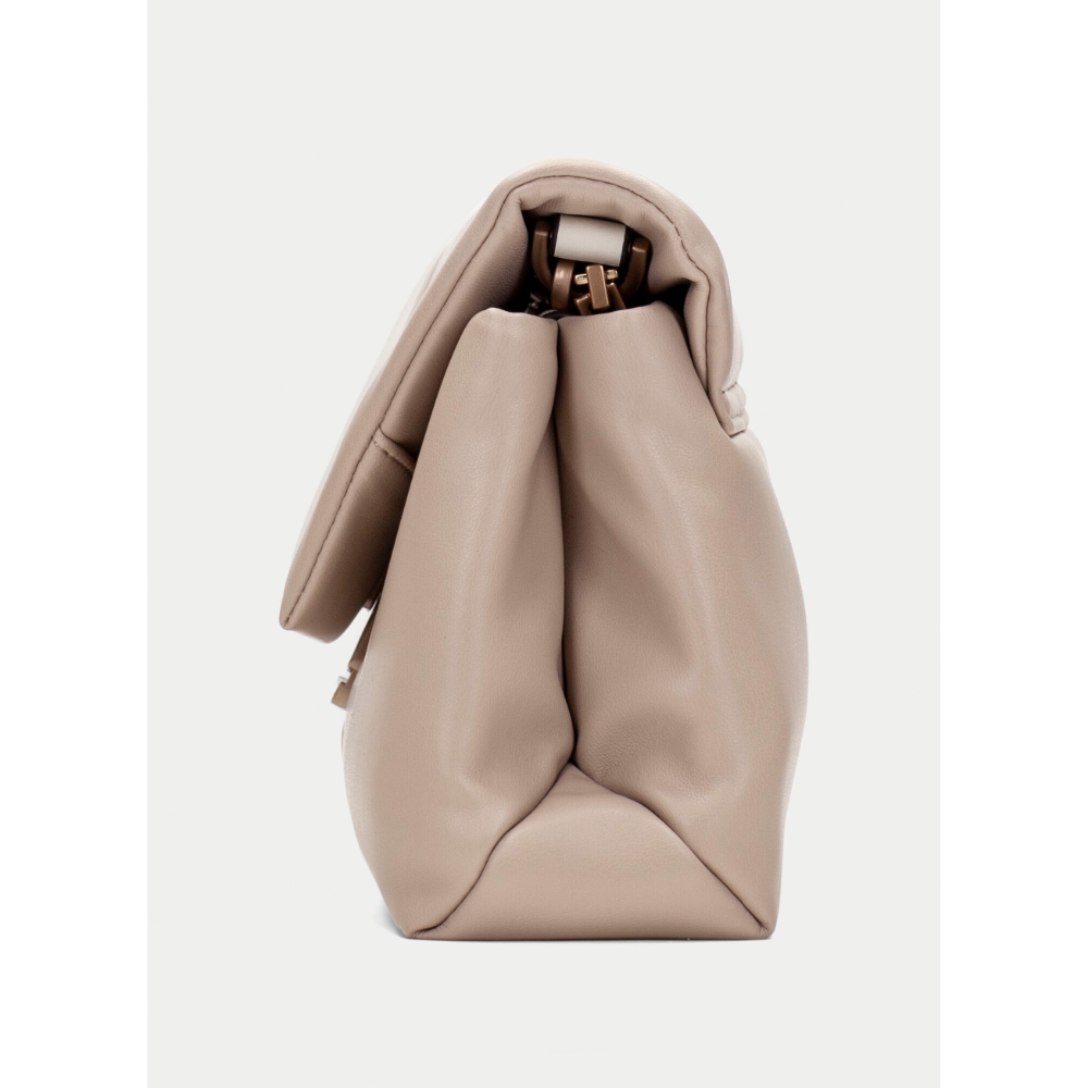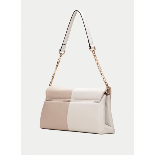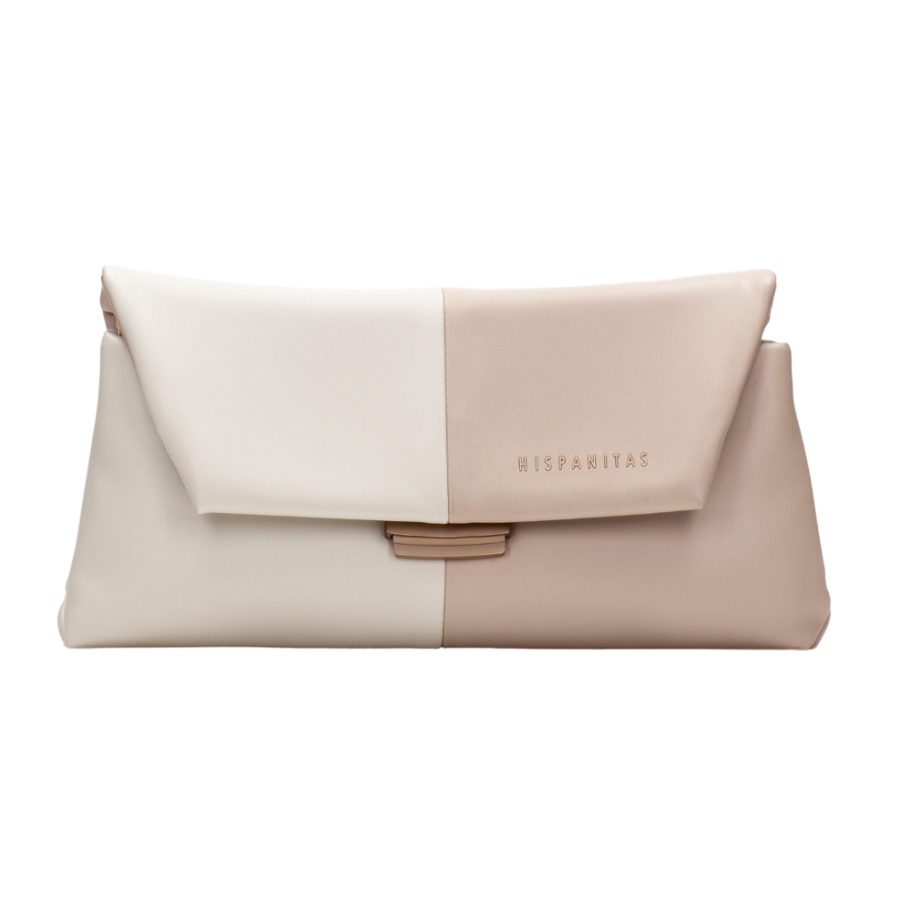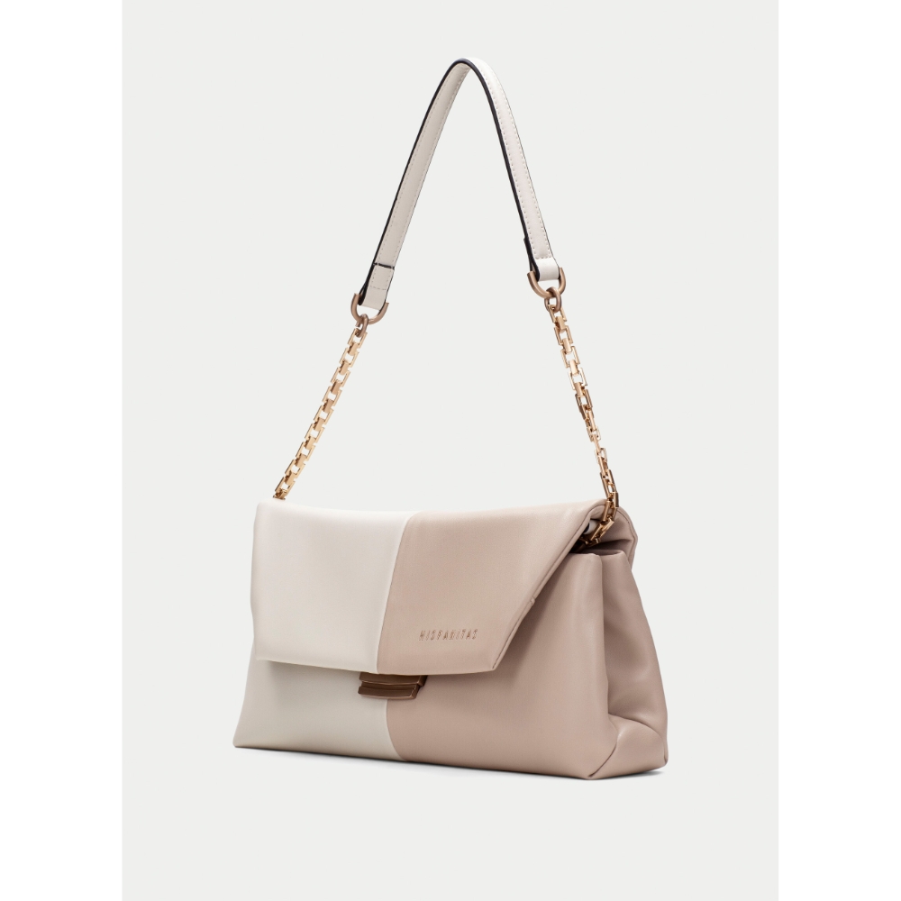 Bolso de hombro en diseño bicolor Asa de cadena metálica dorada combinada con una correa para un toque moderno y chic Cierre frontal con broche metálico de estilo minimalista Amplio espacio interior ideal para llevar tus esenciales, con compartimientos adicionales para mejor organización Fabricado en cuero técnico Detalle del logo “Hispanitas” en el frontal como sello distintivo de la marca.