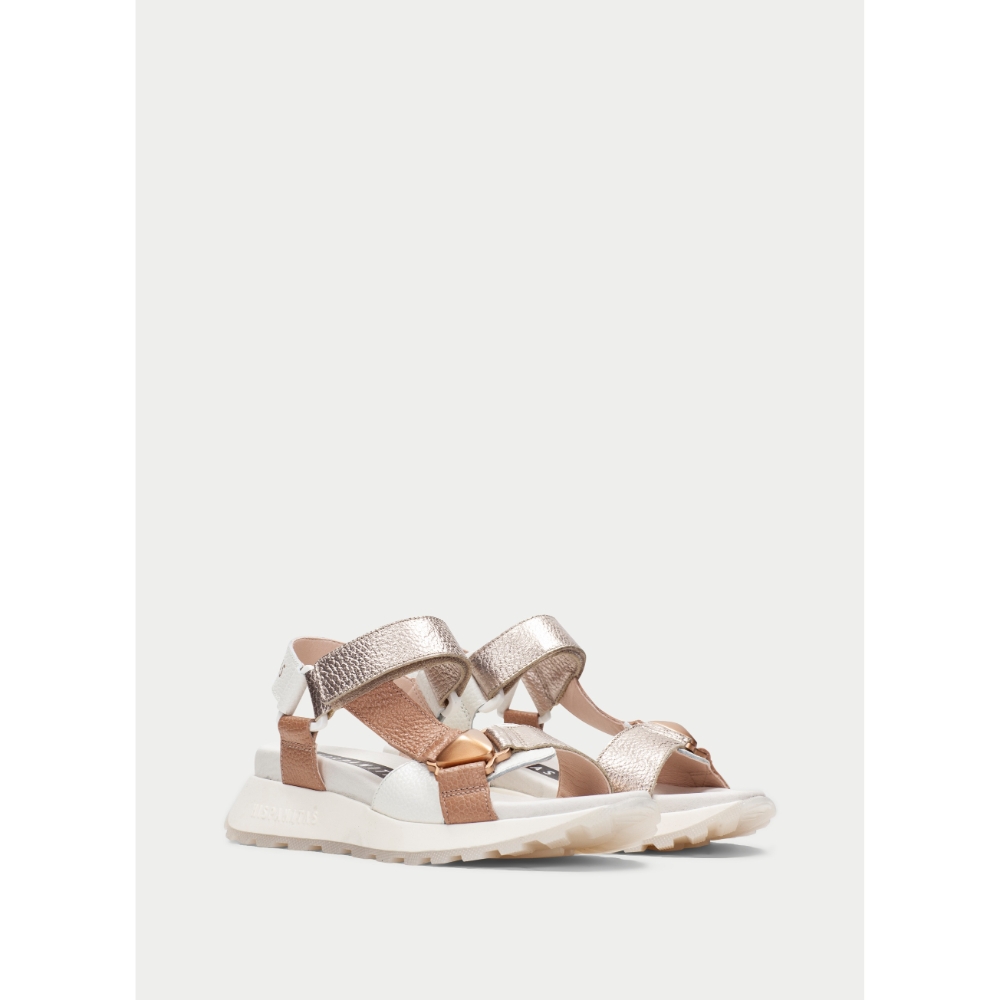 Sandalia de estilo deportivo con un diseño versátil que combina comodidad y carácter. Su suela ligera aporta altura y estabilidad, mientras que la piel con detalles en acabado tipo potro añade un toque distintivo. Una opción ideal para el día a día con un equilibrio entre estilo deportivo y urbano.