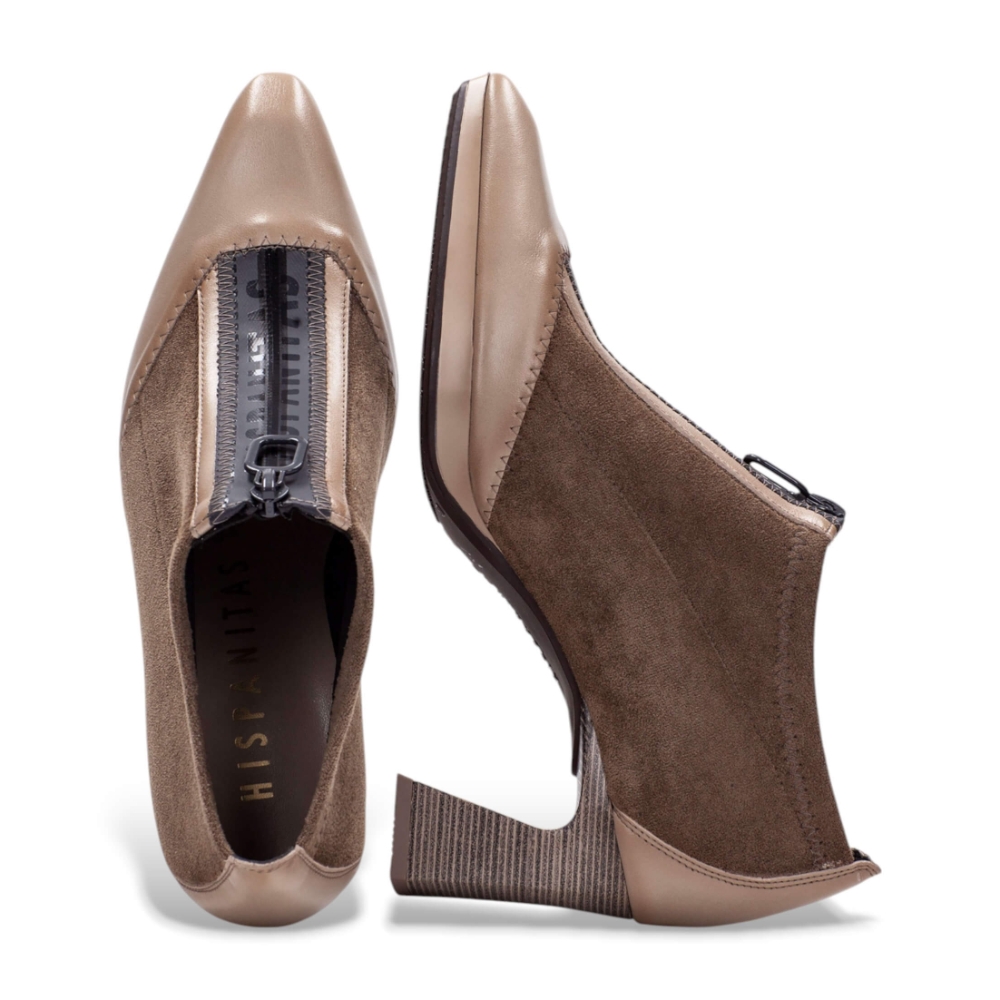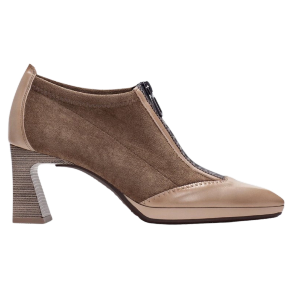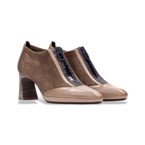 Elaborado en piel soho y velour combinada con tejiido elástico.