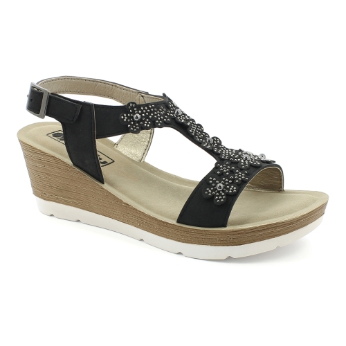 Sandalia con cuña baja de la marca Inblu para mujer. Color negro