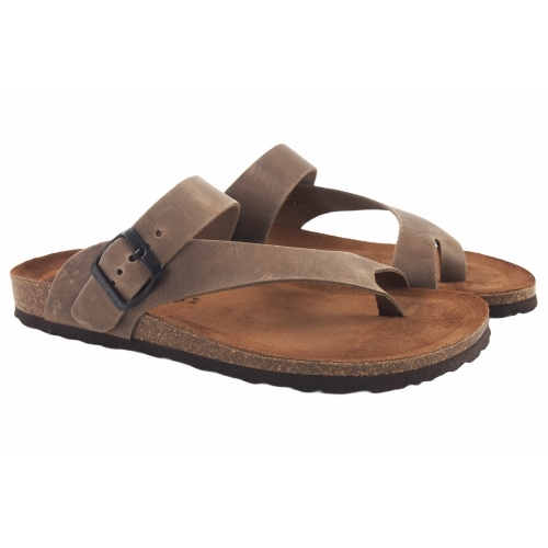 Sandalia de la marca Interbios para hombre. Fabricada en piel de gran calidad con plantilla absorvente. Color pardo