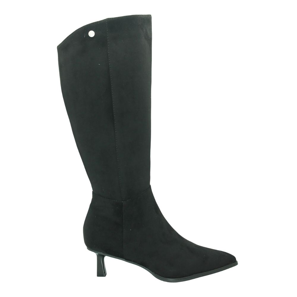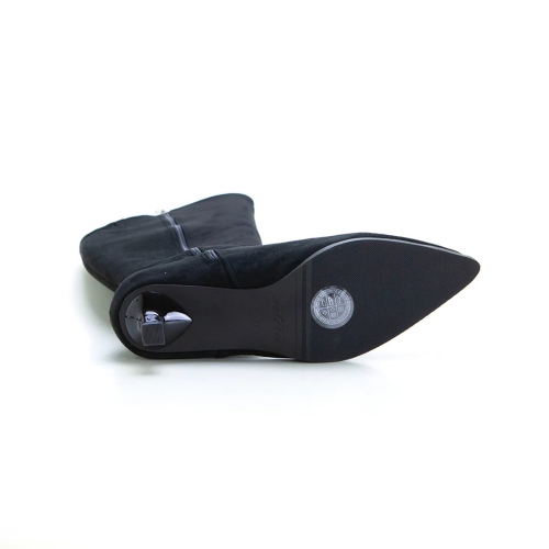 Bota alta con tacón fino estilo chupete para mujer. Fabricada en material de gran calidad. Color negro