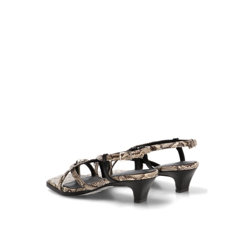 Sandalia con tacón bajo de la marca Isteria para mujer. Color serpiente.