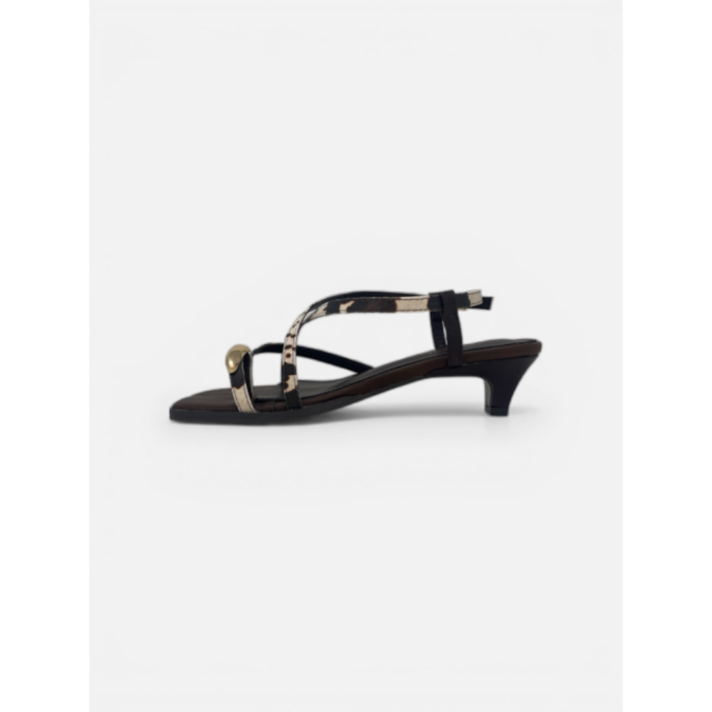 Sandalia con tacón bajo de la marca Isteria para mujer. Color vaca