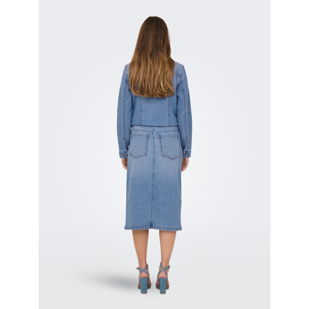 Trae un clásico de vuelta a tu guadarropa con esta falda de tela vaquera, que combinará a la perfección con tu top favorito y un par de zapatillas deportivas. - Artículo : Falda vaquera - Cierre : Cierre con botón y cremallera - Bolsillos : Bolsillos traseros, Bolsillo relojero, Bolsillos delanteros - Cintura : Cintura alta - Largo/talla : Largo Midi - Detalles : Trabillas