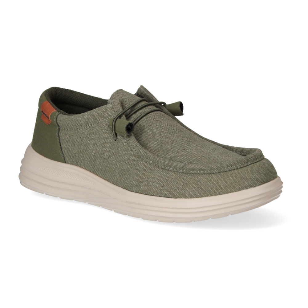 Zapato estilo mocasin de lona para hombre. Su piso extra ligero y su material textil te aportarán esa comodidad que tanto buscas. Color verde