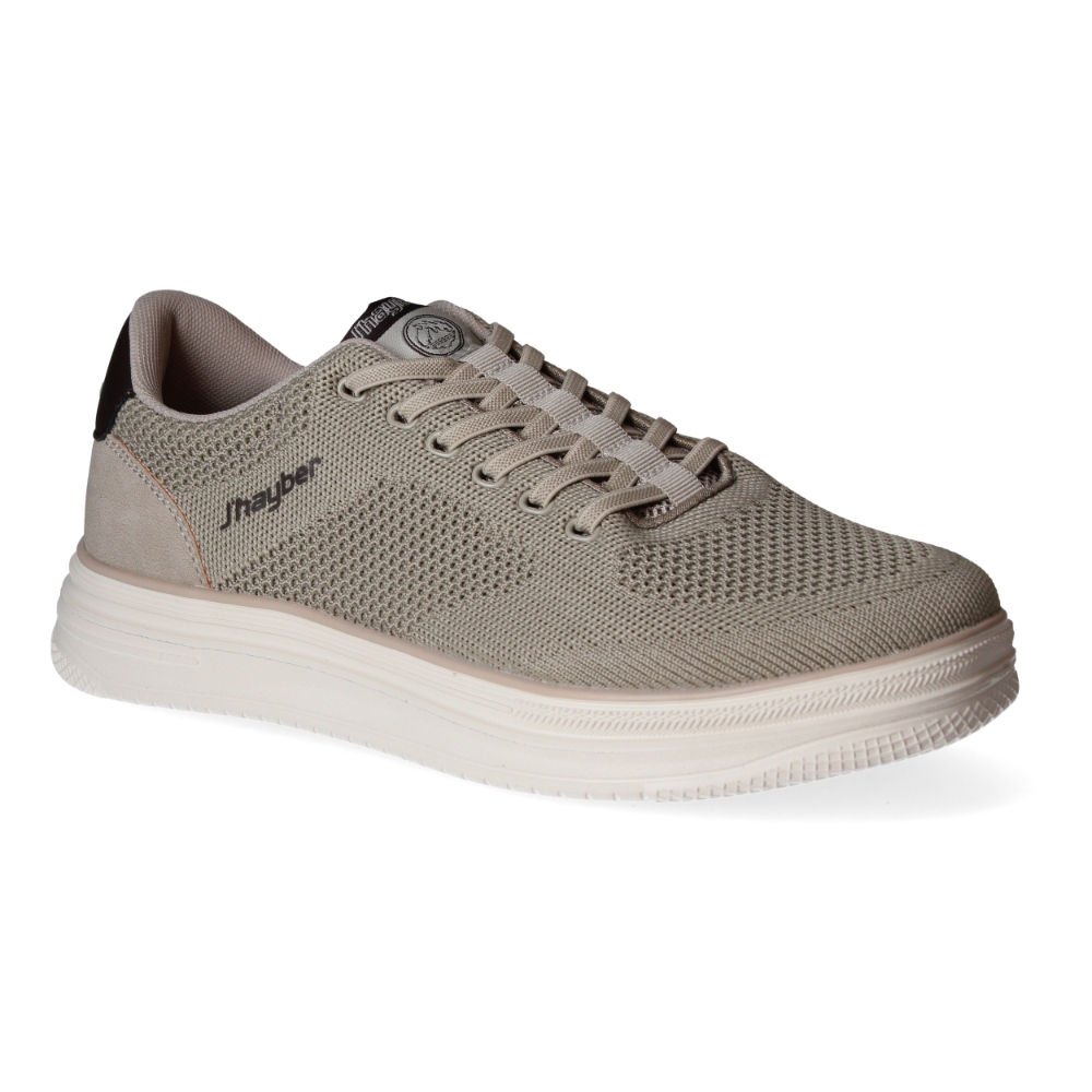 Deportiva con cordon para hombre. Su suela con gran amortiguación y su material textil transpirable te ofrecerán el máximo confort para tu día a día. Color beig