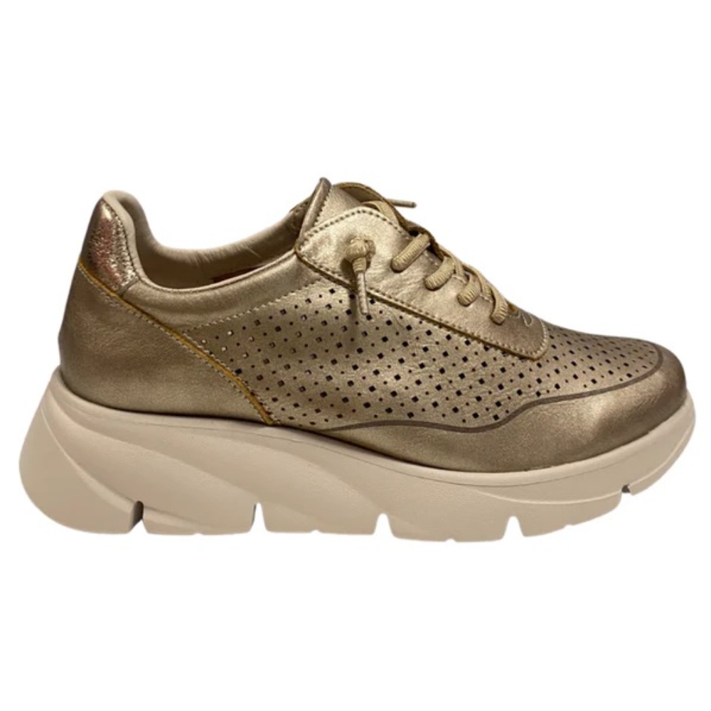 Deportivo Blucher Khloe Marín plano sport casual, en color bronce con cordones elásticos, para facilitar su calce y descalce, ya que se adaptan correctamente a tus pies, y sobre todo, si son esos pies sufridos que no aguantan cualquier zapato.