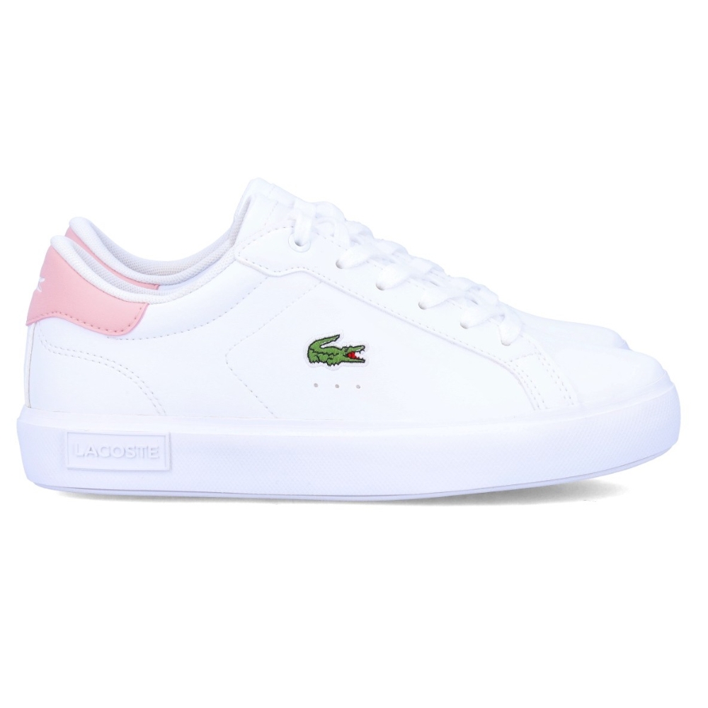 Zapatilla casual de la marca Lacoste para mujer. Fabricada en material de gran calidad. El tipo casco de siempre de la marca Lacoste para tu look más casual, con estas zapatillas tenis en color blanco y rosa podrás brillar como nunca.