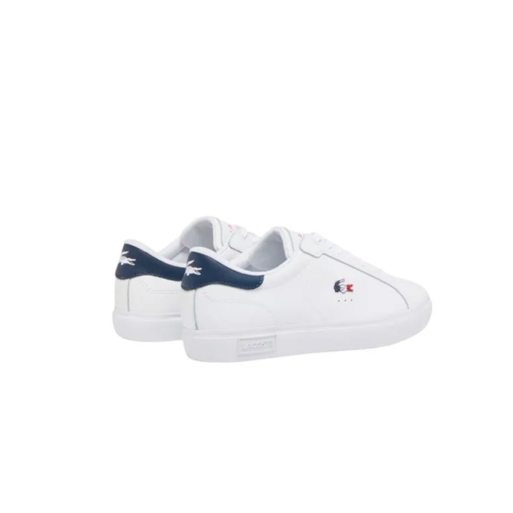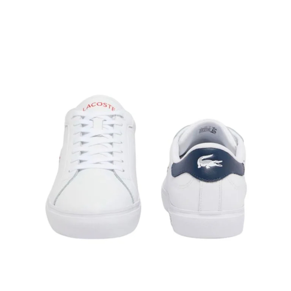 Las zapatillas Lacoste Powercourt 125 1 Sma para hombre son un modelo atractivo que combina estilo y funcionalidad. Con una parte superior de piel de alta calidad en una elegante combinación de blanco, azul marino y rojo, estas zapatillas destacan por su exclusivo contraste en el talón, donde se encuentra el icónico cocodrilo en bajorrelieve.