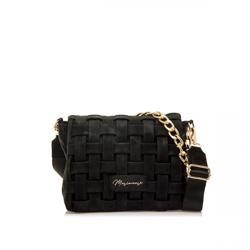 Bolso bandolera de color taupe para mujer, modelo Mera de Mariamare. El frontal trenzado le da un acabado artesanal y moderno, mientras que la cadena con eslabones dorada aporta un contraste elegante. Dispone también de correa ajustable para mayor comodidad y una solapa con cierre práctico que asegura tus pertenencias. El logo de la marca aparece en una placa frontal, integrándose con el diseño. Ideal para llevar lo esencial en el día a día con un toque distintivo y funcional.