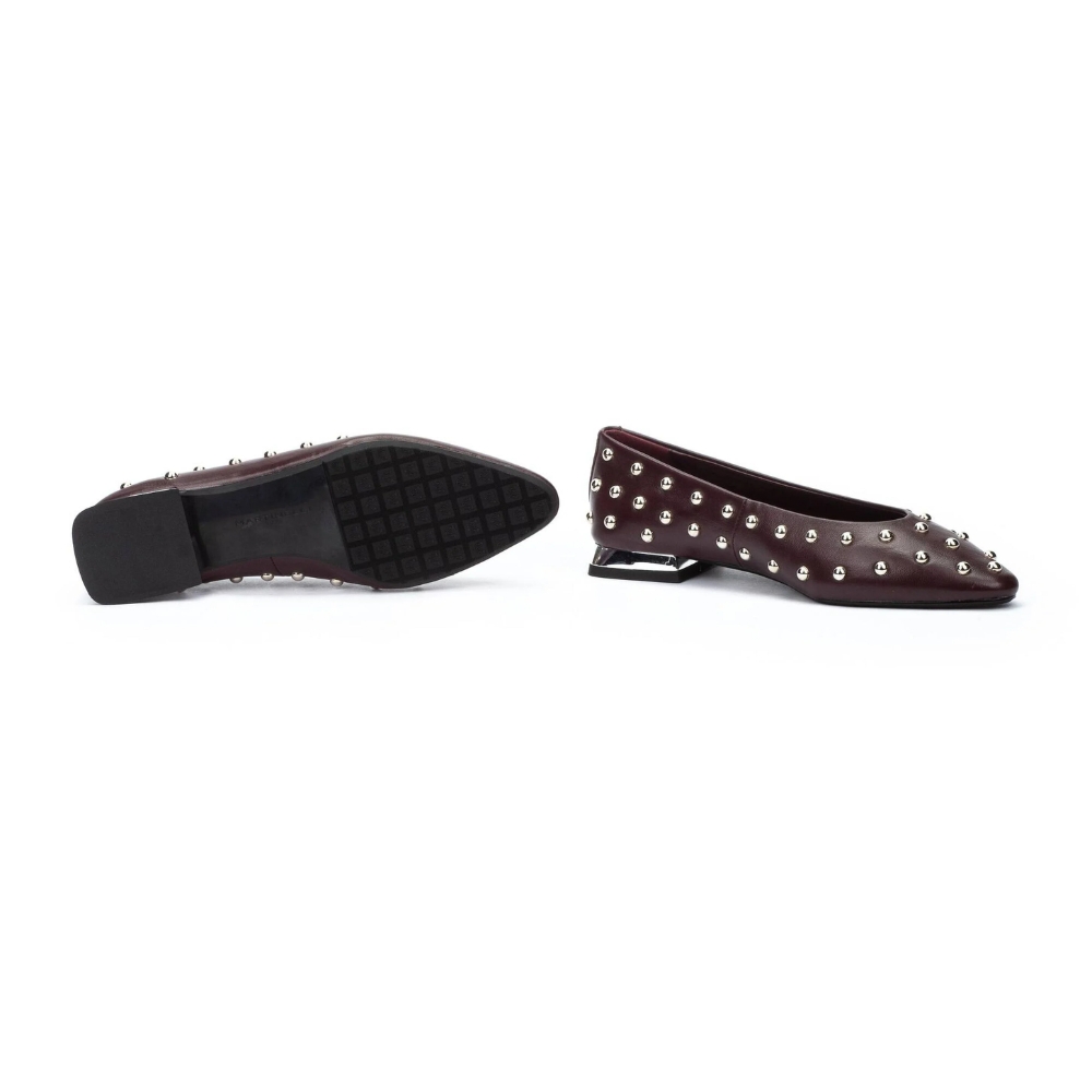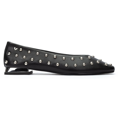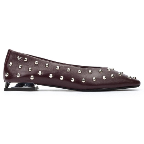 Bailarina Vescia. Bailarina de piel con tachas y tacón metalizado de 2,3 cm punta almendrada. Exprime el día a día con New Elegance, elegancia actualizada y comodidad.