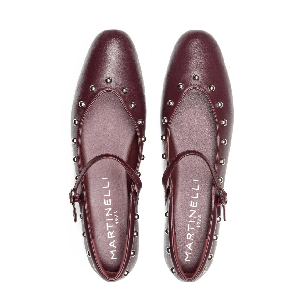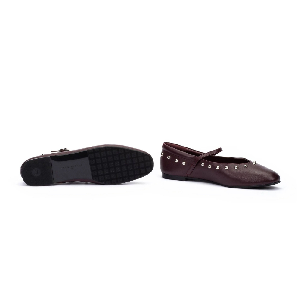 Bailarina Lariana. Bailarina de piel con tachas y punta almendrada tacón plano de 1.5 cm. Exprime el día a día con New Elegance, elegancia actualizada y comodidad.