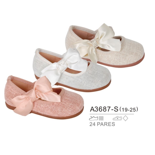 Zapato estilo merceditas de la marca Bubble para niña. Fabricado en material textil con lazo. Color rosa
