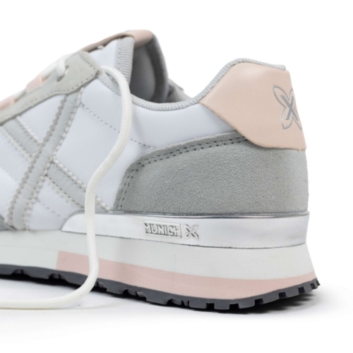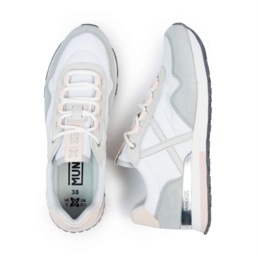 Deportiva estilo retro con cordón de la marca Munich para mujer. Fabricada en material de gran calidad, combinando comodidad y moda en una zapatilla unica. Color blanco