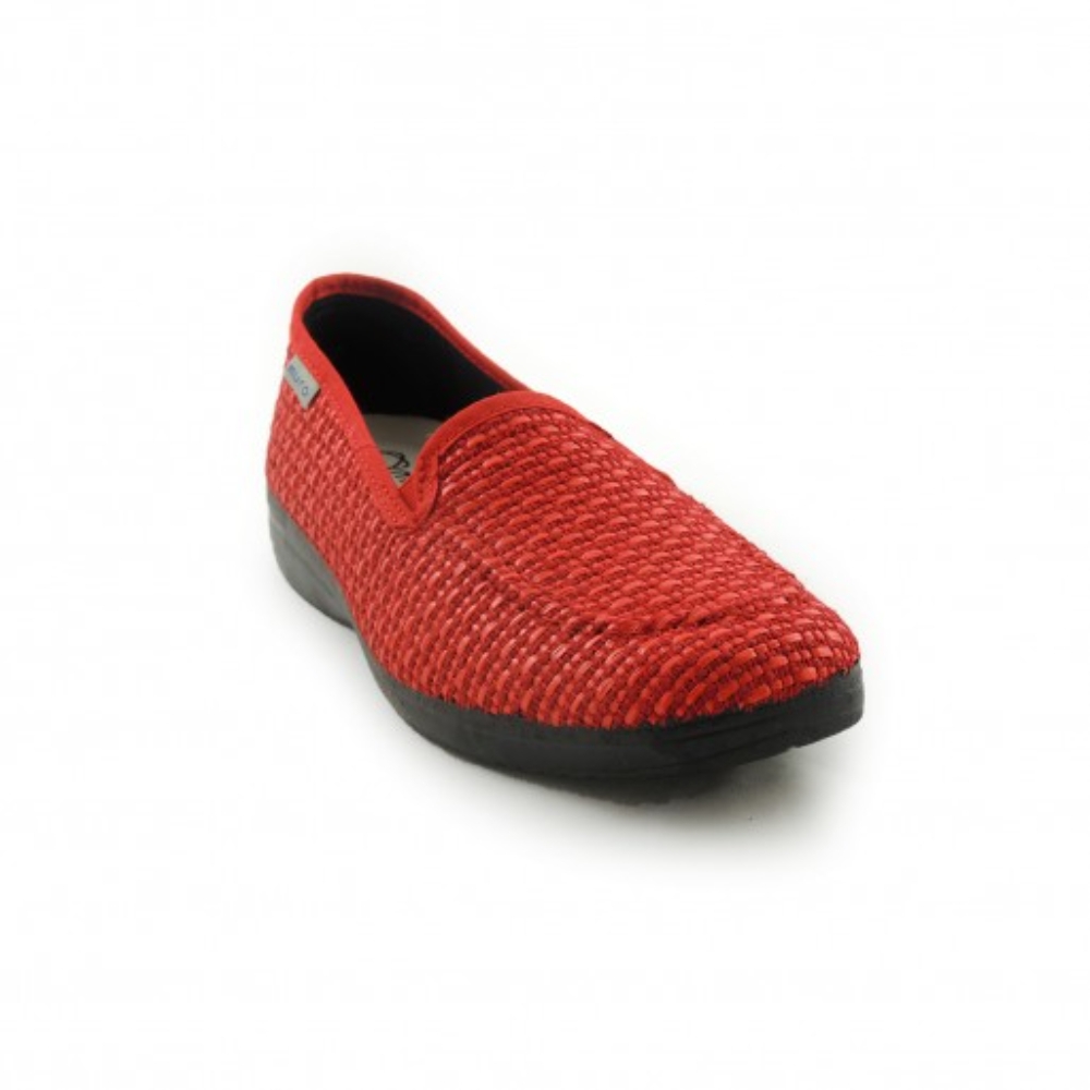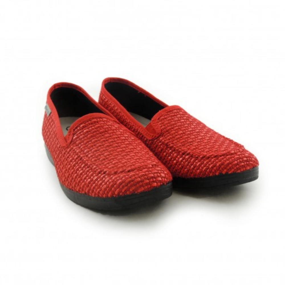 Zapatilla marca Garrido Muro. Estilo mocasín en color rojo con elástico. Suela flexible y antideslizante. Hecho en españa.