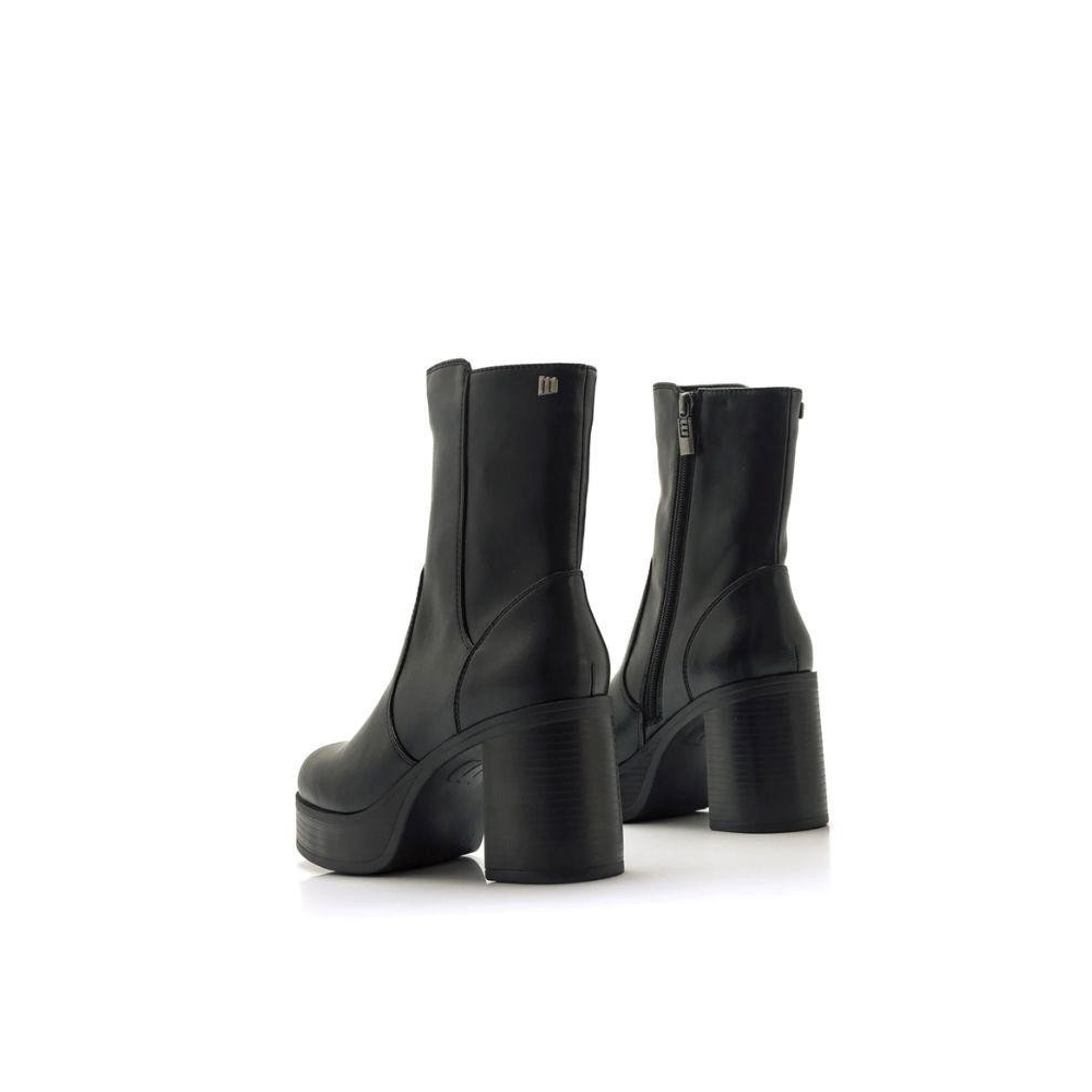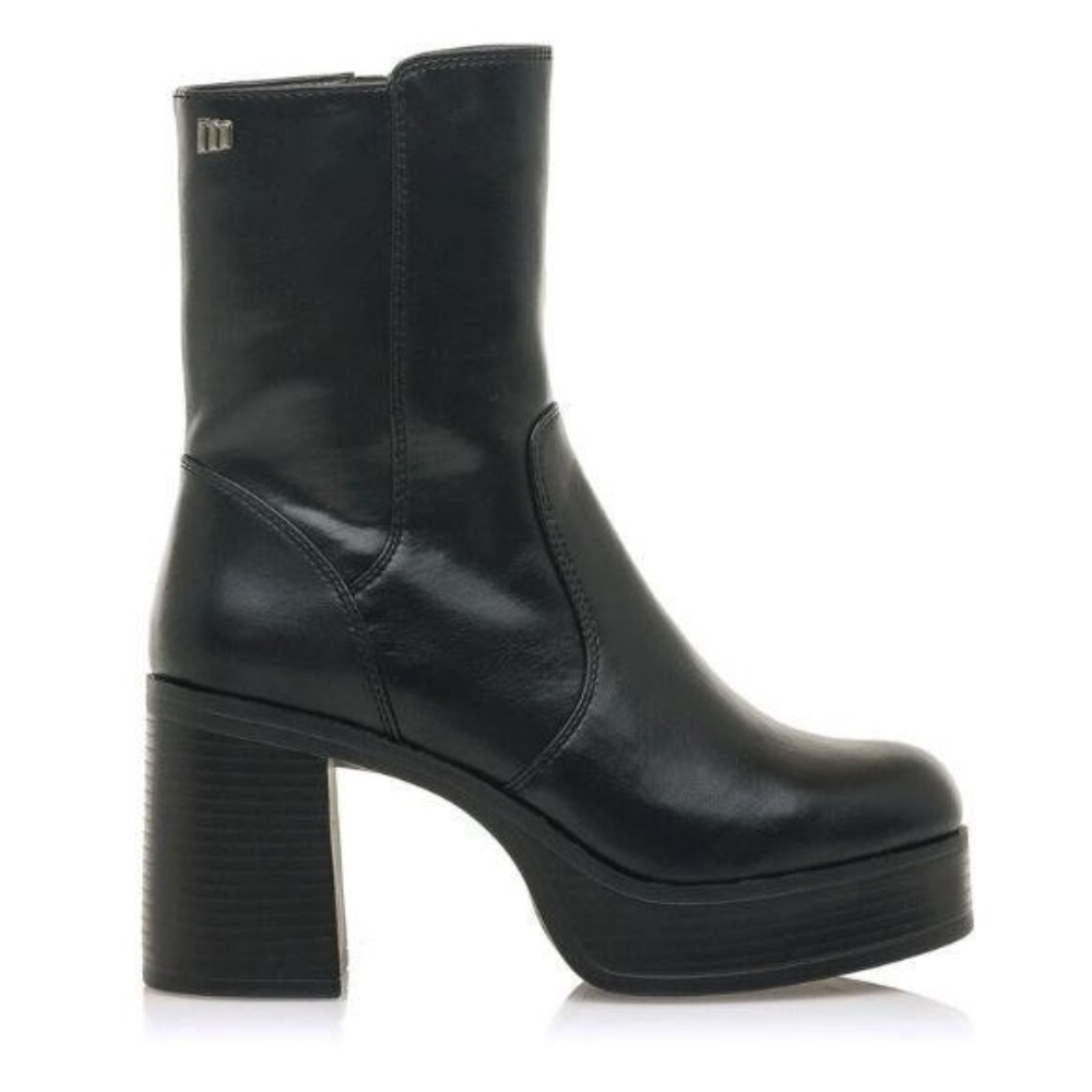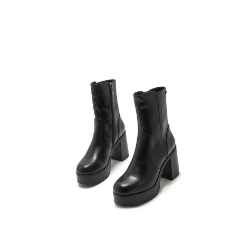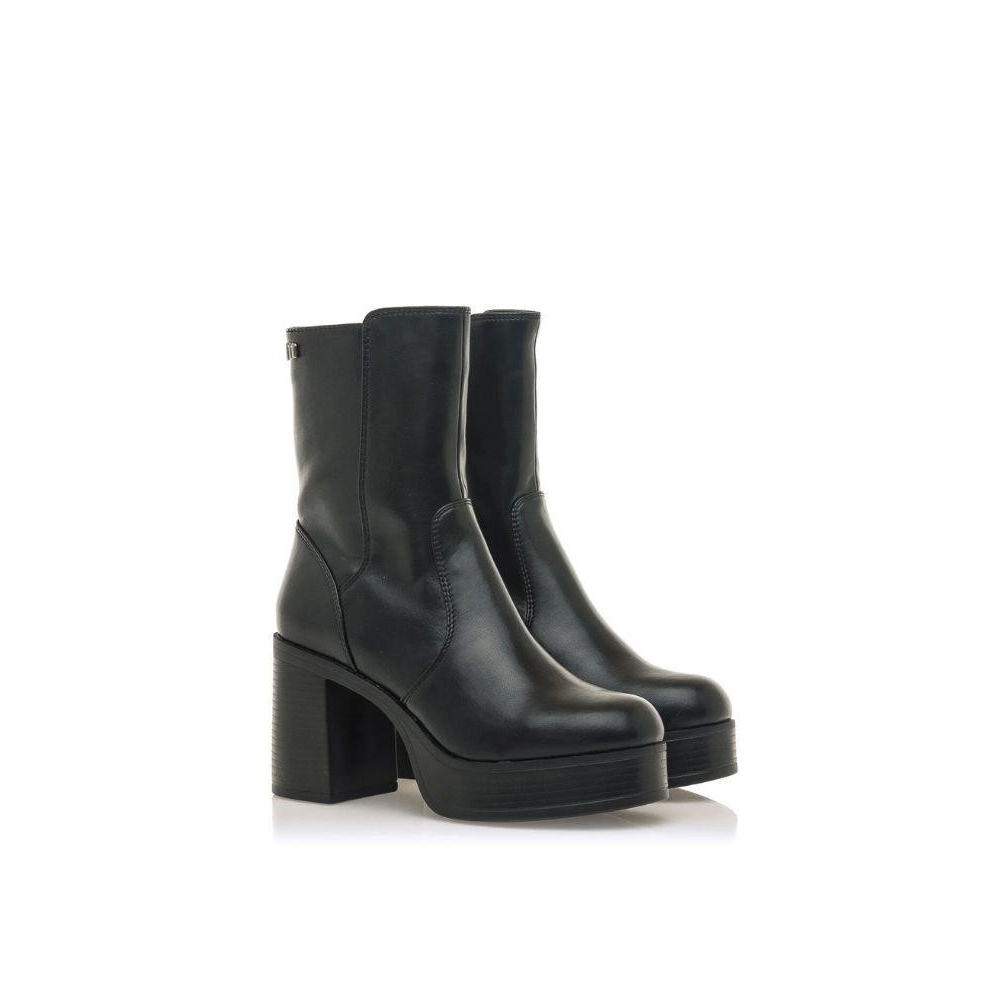 Botin con tacón y plataforma de la marca Mustang para mujer. Fabricado en polipiel con tacón de 8cm apróximadamente. Color negro