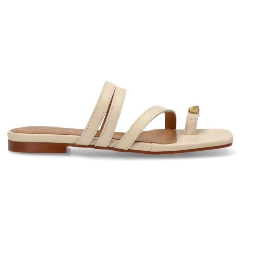 Sandalias planas de color beig para mujer, modelo Necane de la marca Mtng, diseñadas en colaboración con la influencer Marta Lozano. Este diseño destaca por sus finas tiras que aportan un estilo minimalista y moderno, realzado por una pie