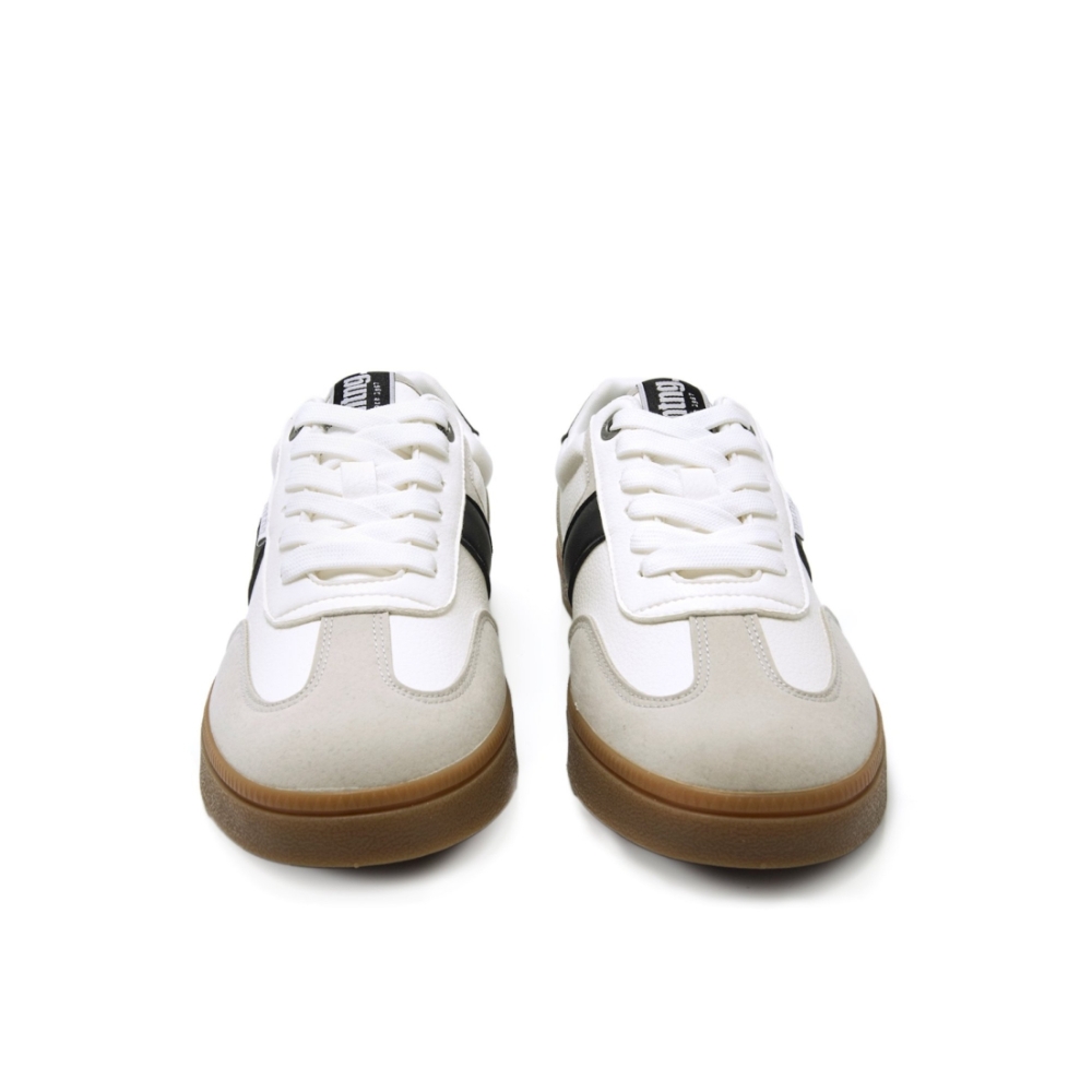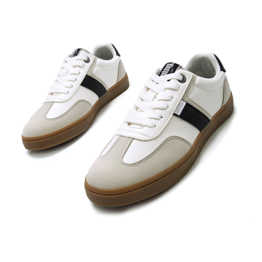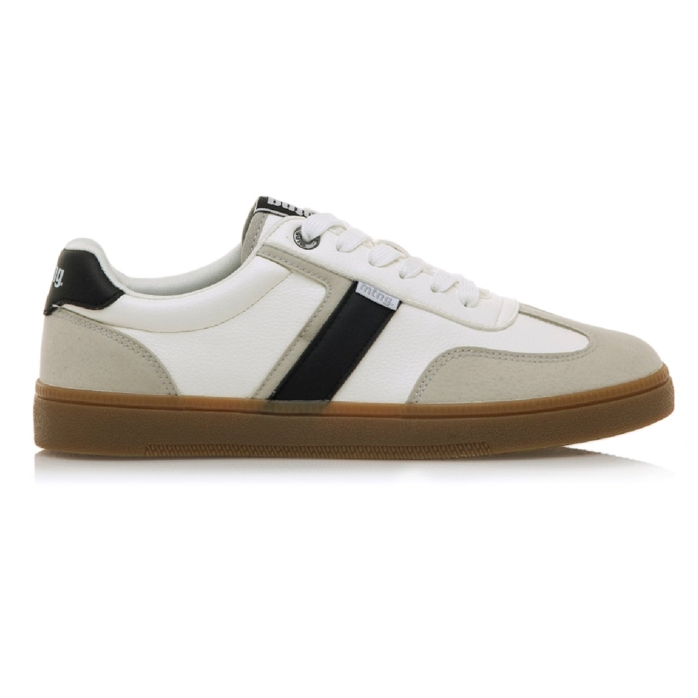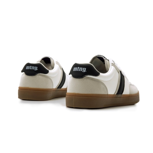 Zapatillas blancas Goal de hombre de Mtng. Estas zapatillas cuentan con un diseño clásico y versatilidad. Combinan una suela en tono marrón con un exterior en blanco y detalles en negro que aportan un contraste moderno y sofisticado. Ideales para el día a día y fáciles de combinar. Con cierre de cordones. Si eres una persona clásica que busca un calzado de uso diario, Goal de Mtng es para ti.