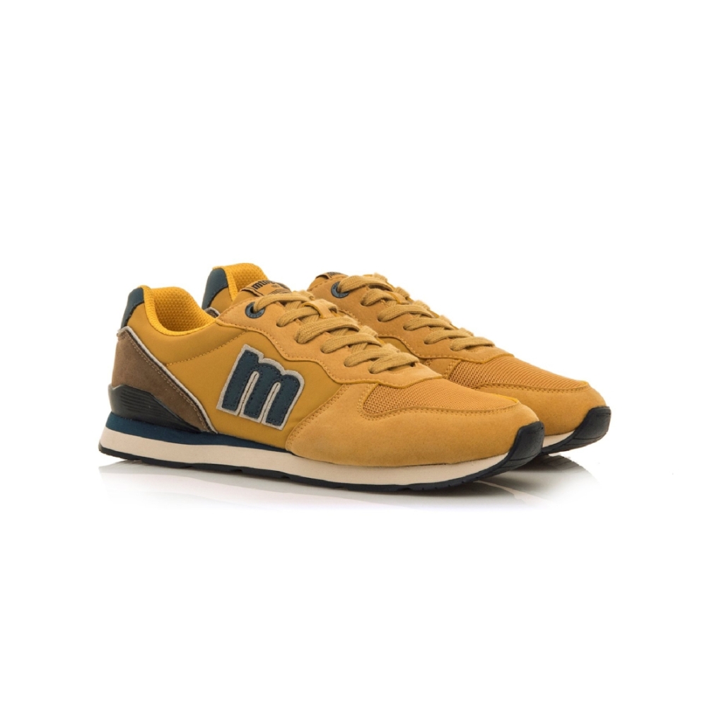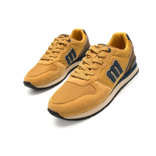 Zapatillas para hombre de la marca Mtng modelo Joggo Classic de color mostaza. Un diseño deportivo de inspiración retro con mezcla de texturas en el corte y detalles contrastados en azul marino y marrón. Su suela en blanco y marino aporta un toque actual y combina fácilmente con looks urbanos. Incorporan una plantilla de 4 mm con tecnología Starfit, estas zapatillas ofrecen una pisada suave y cómoda. Su espuma Comfort Foam aporta un acolchado extra, ideal para disfrutar de un confort prolongado en cada uso. Con certificado VEGANO sellado por INESCOP, el cual garantiza que la naturaleza química principal del material no se corresponde con fibras de origen animal