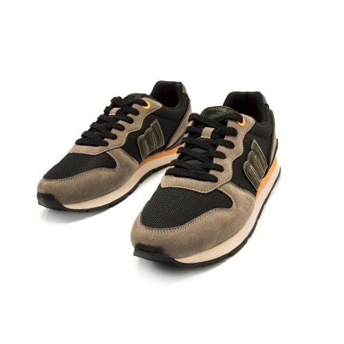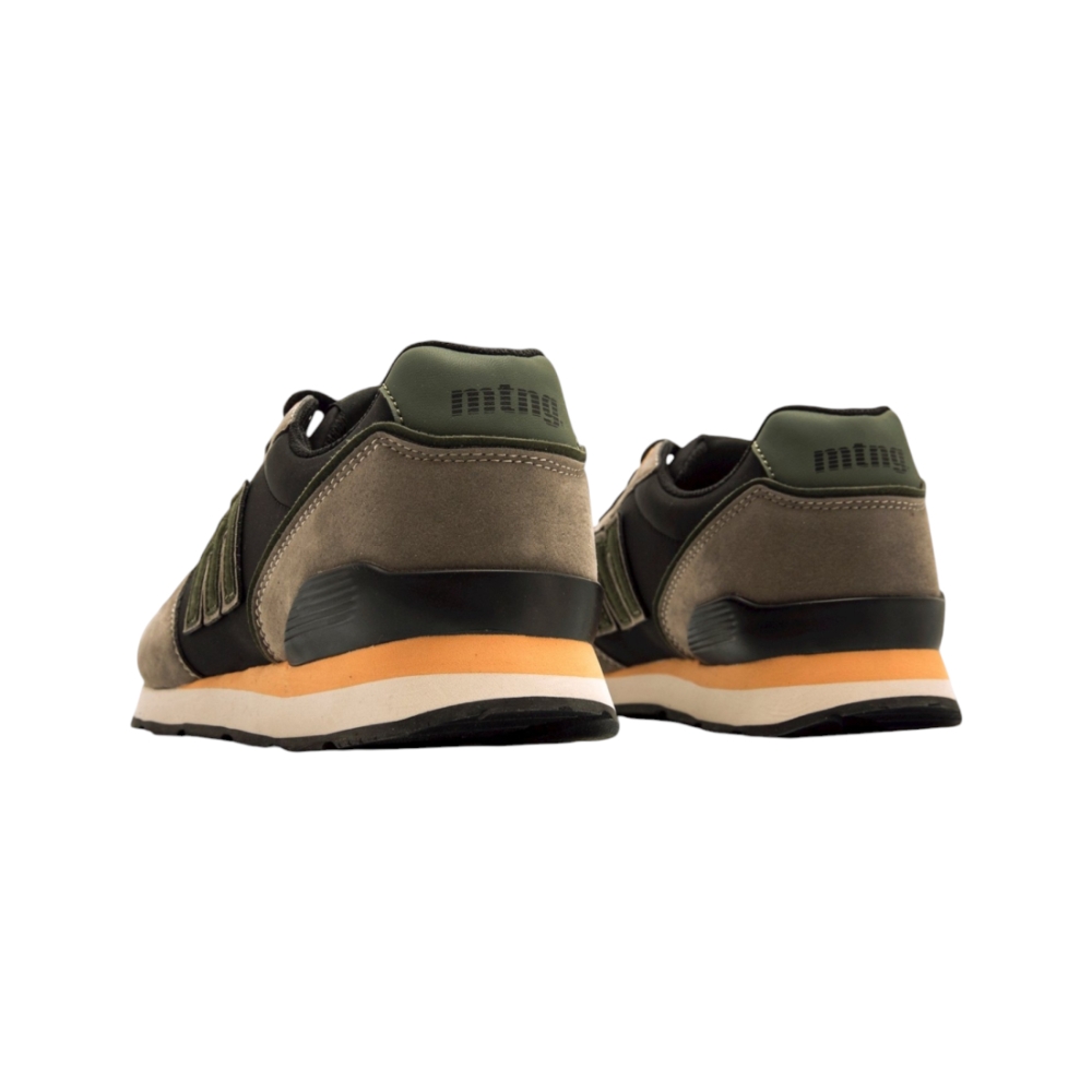 Zapatillas negras para hombre, modelo Joggo Classic de Mtng. Este modelo destaca por sus paneles grises y sus detalles en tonos verdes y naranjas, que añaden un toque dinámico y moderno. La combinación de colores, junto con su suela de goma, asegura un look versátil y fácil de combinar. Incorporan una plantilla de 4 mm con tecnología Starfit, estas zapatillas ofrecen una pisada suave y cómoda. Su espuma Comfort Foam aporta un acolchado extra, ideal para disfrutar de un confort prolongado en cada uso. Con certificado VEGANO sellado por INESCOP, el cual garantiza que la naturaleza química principal del material no se corresponde con fibras de origen animal.
