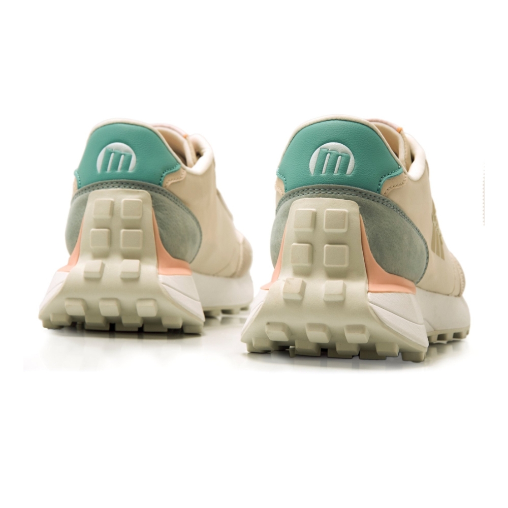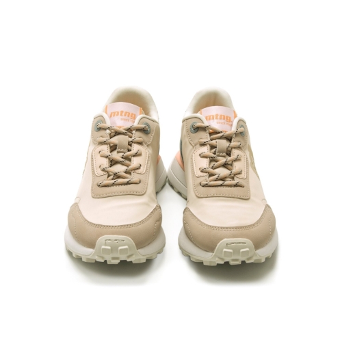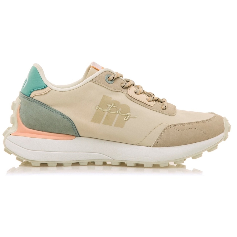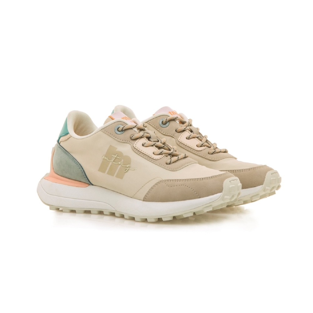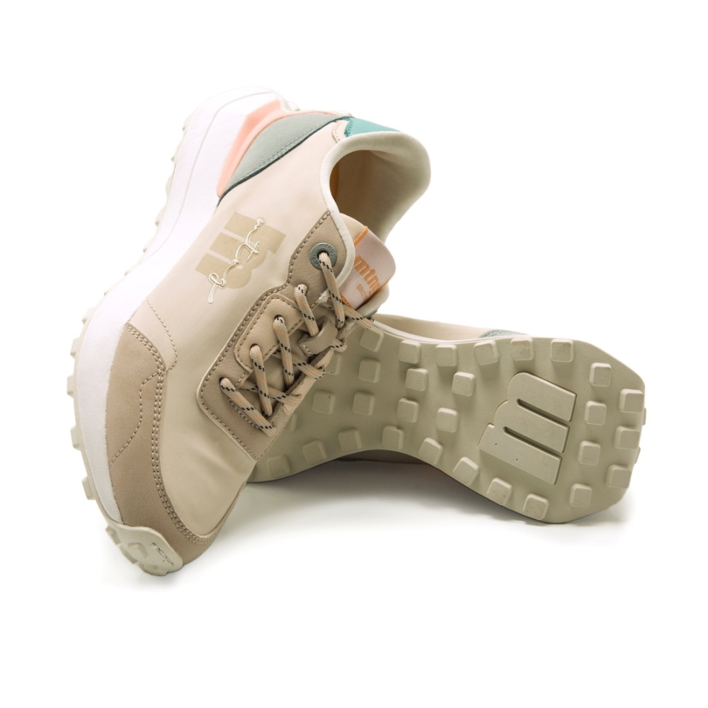 Zapatillas beige Zinc de mujer de la marca Mustang. Estas zapatillas destacan por sus detalles en tonos azul y coral que añaden un toque de originalidad. La suela gruesa y el diseño acolchado proporcionan comodidad. Las deportivas Zinc de Mustang son perfectas para añadir un toque de color y estilo a cualquier look.