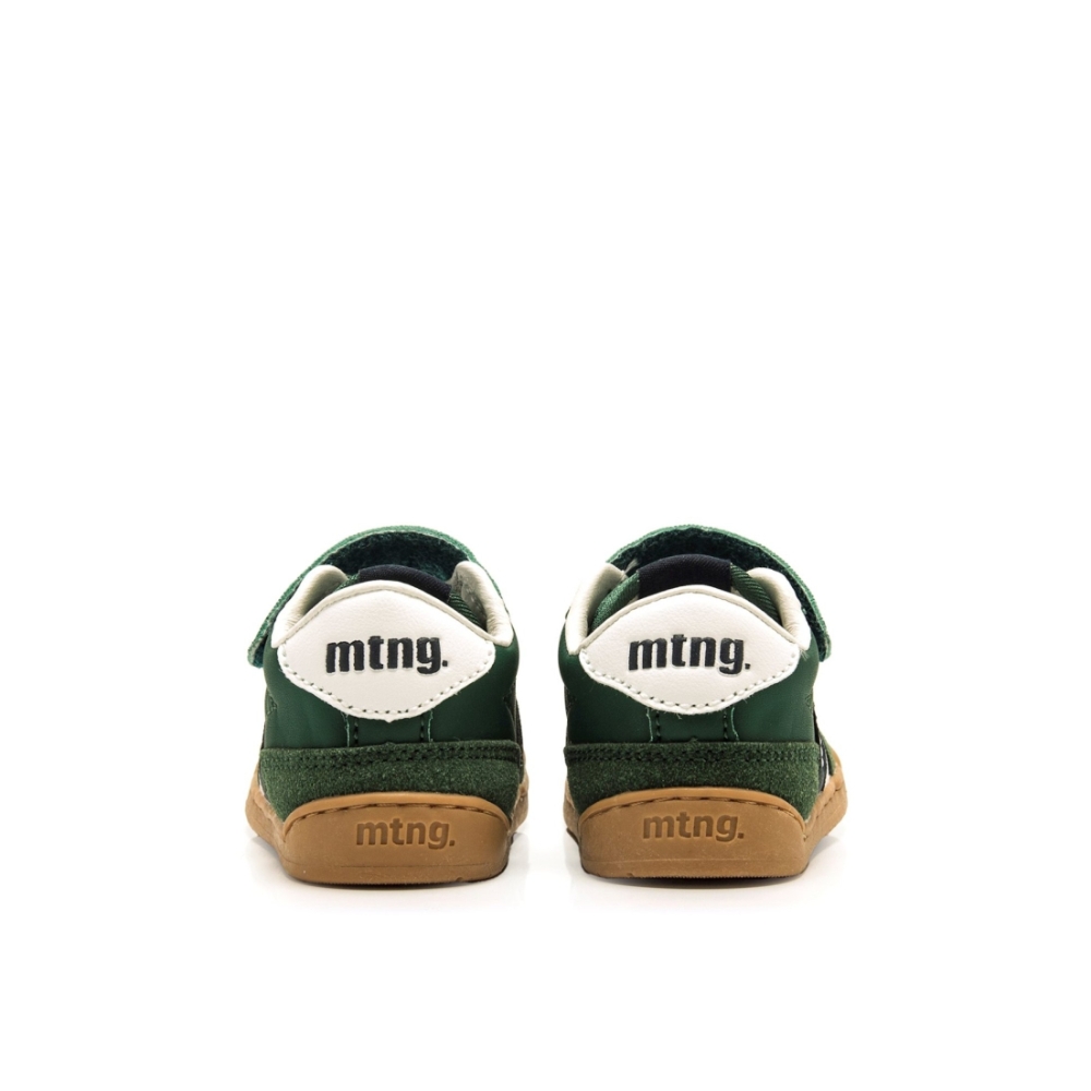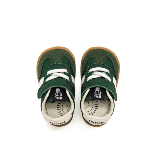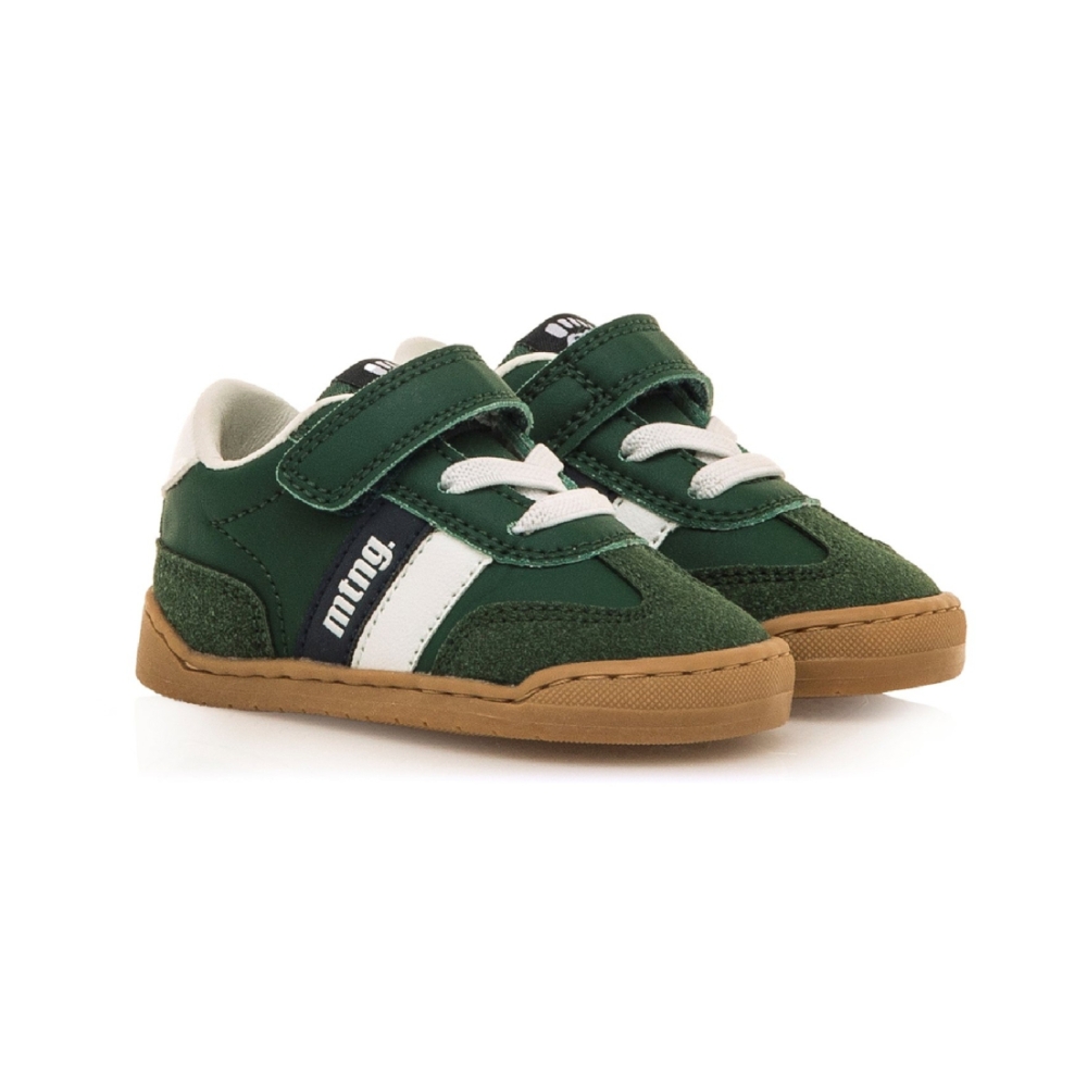 Zapatillas de color verde para bebé, modelo Free Baby de la marca mtng. Con detalles en blanco y azul marino, su diseño de estilo casual incorpora cierre adhesivo y cordones elásticos para un ajuste práctico. Diseñada y desarrollada especialmente en colaboración con el Dr. Juanjo López, traumatólogo deportivo e infantil, para respetar el desarrollo natural del pie de los niños. Gracias a su puntera ancha permite el libre movimiento de los dedos dentro del zapato. Su suela tiene 3 mm de grosor y con zero drop (totalmente plana) respeta el natural desarrollo del pie del pequeño y sus elementos flexibles y torsionables hace que el pie del niño no esté encorsetado por la estructura del zapato. Las plantillas extraíbles facilitan comprobar si la talla del calzado es la correcta para tu hijo. Además, su fácil apertura facilita que el niño pueda descalzarse y calzarse de forma autónoma. Acompaña los primeros pasos de tu bebé con mtng. Con certificado VEGANO sellado por INESCOP, el cual garantiza que la naturaleza química principal del material no se corresponde con fibras de origen animal.