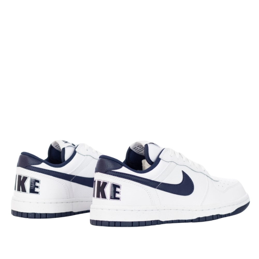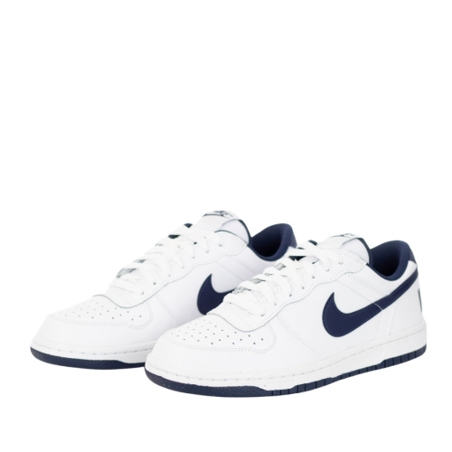 Zapatillas deportivas de piel sintética blanca con inserciones de piel sintética azul noche. Logotipo icónico en contraste en el lateral y maxi logotipo en la parte trasera. Suela de goma.