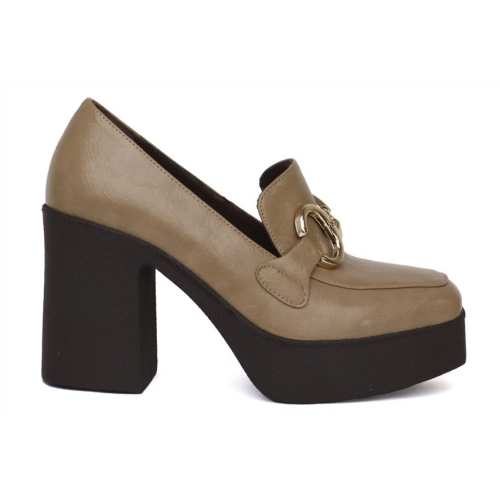 Mocasín con tacón alto y plataforma de la marca Noa Harmon para mujer. Fabricado en piel de gran calidad. Color beig