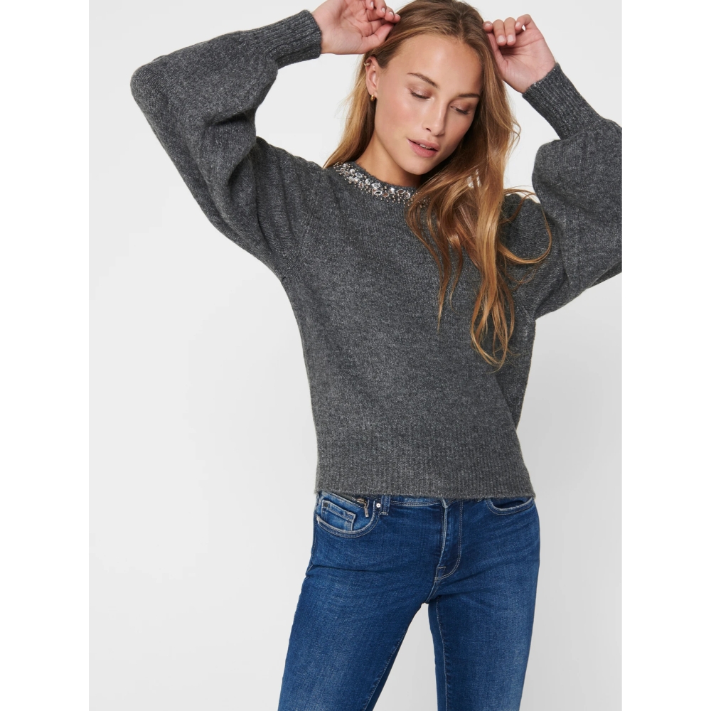 Completa tu look con una prenda de punto femenina y clásica que aporta suavidad y calidez. - Artículo : Jersey de punto - Cuello : Cuello redondo - Manga : Manga larga - Puños  : Puños altos - Detalles : Estrases - Corte : Corte regular