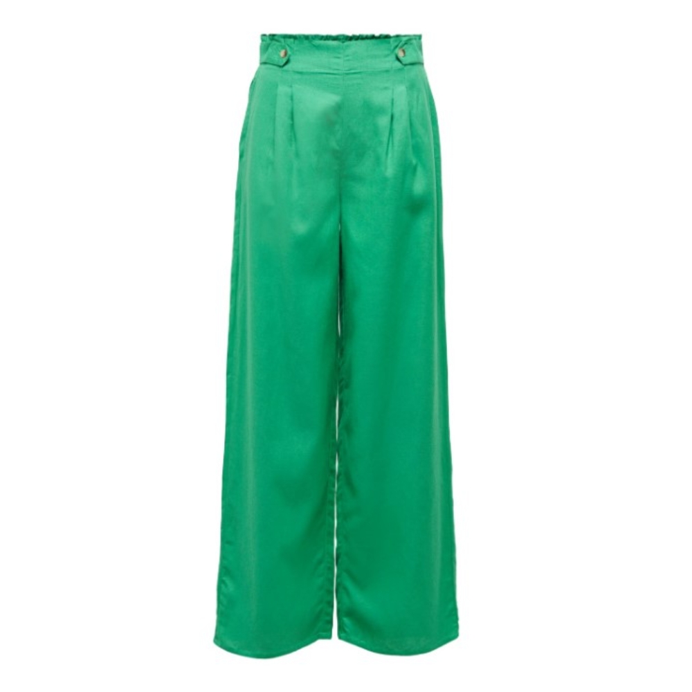 Pantalón clásico de tiro alto, cintura elástica y corte pierna ancha. Color verde.