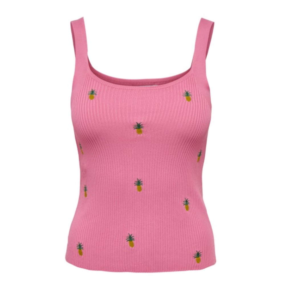 Top veraniego con bordado de flores de Only y tirantes anchos. El material elástico garantiza una excelente comodidad de uso. Corte que abraza la figura. Color rosa.
