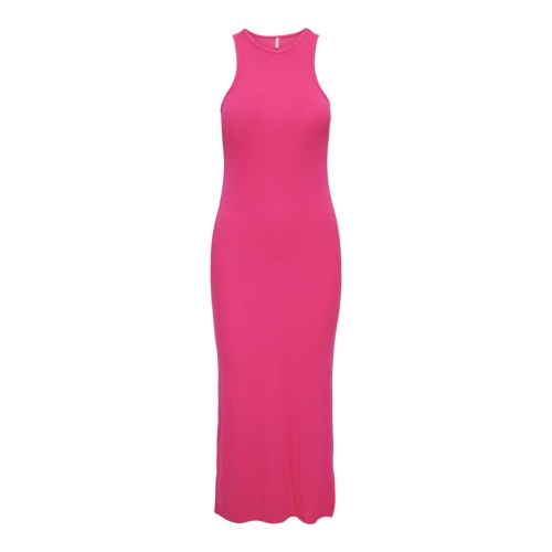 Vestido de mujer ajustado y largo sin mangas. Color rosa.