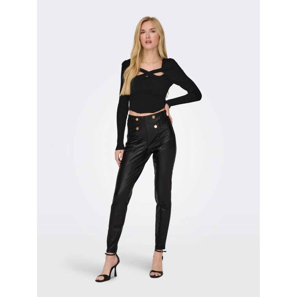 Pantalón estilo legging con corte slim y cintura media. Color negro