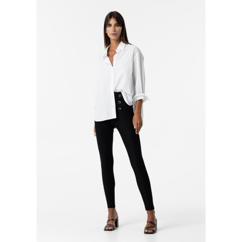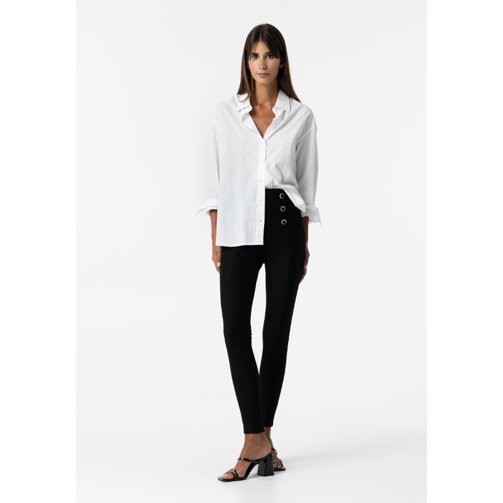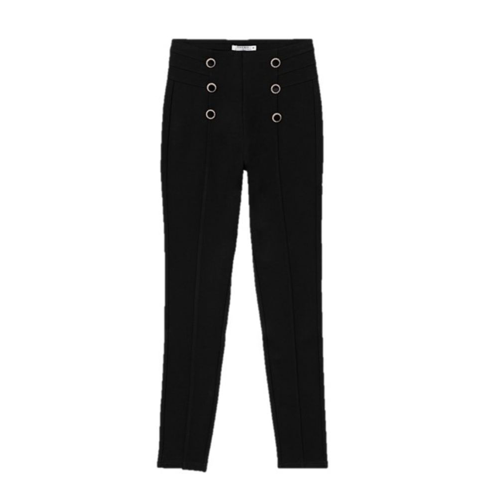 Legging de tiro alto con cinturilla elástica. Botones falsos delanteros con piedras.