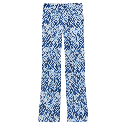 Pantalón fluido de tiro alto con cierre delantero con cremallera, botón y gancho en el interior. Bolsillos laterales. Estampado all over. Bolsillos falsos traseros.